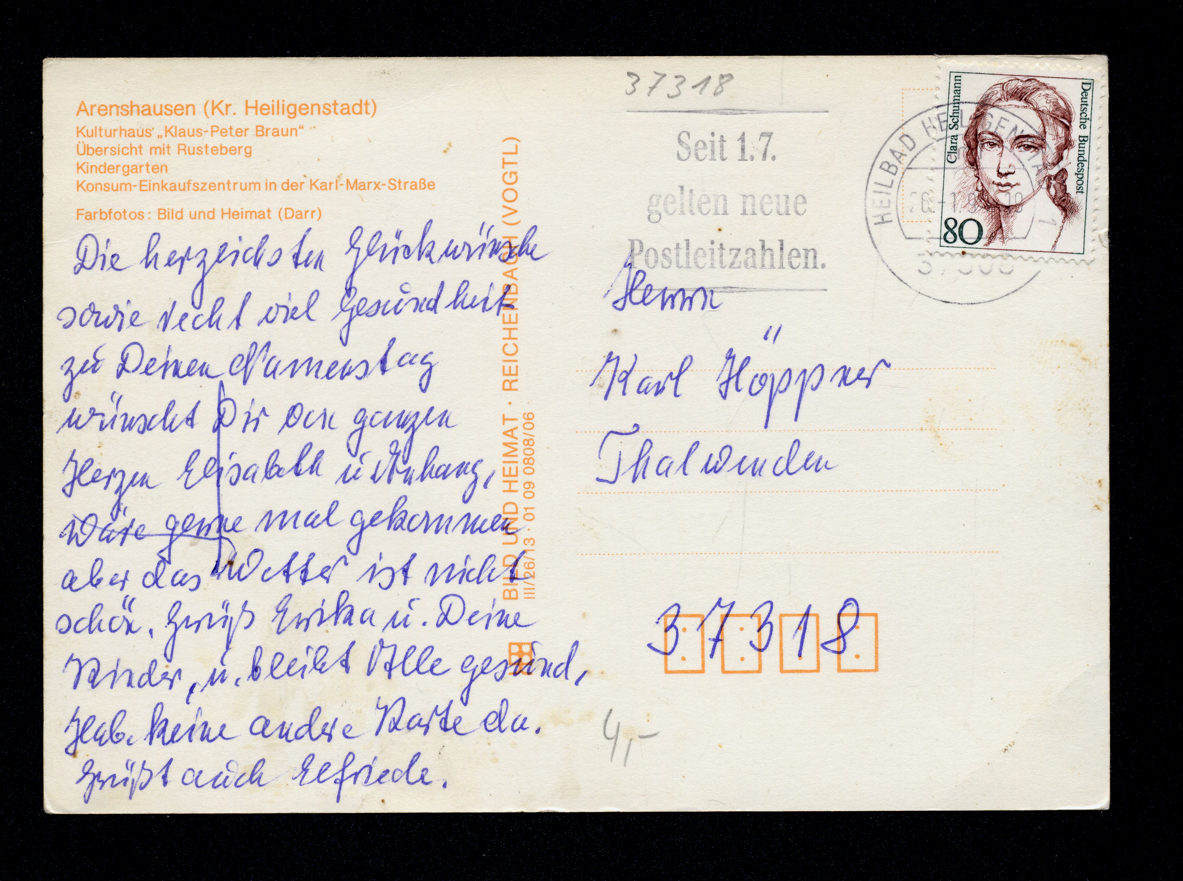 Ort Arenshausen Motive Kulturhaus ''Klaus-Peter Braun'' Übersicht mit Rusteberg Kindergarten Konsum-Einkaufszentrum in der Karl-Marx-Straße Format groß Verlag Bild und Heimat, Reichenbach i. V. (VEB Bild und Heimat) Bestell- oder Individualnummer III/26/13 01 09 0808/06