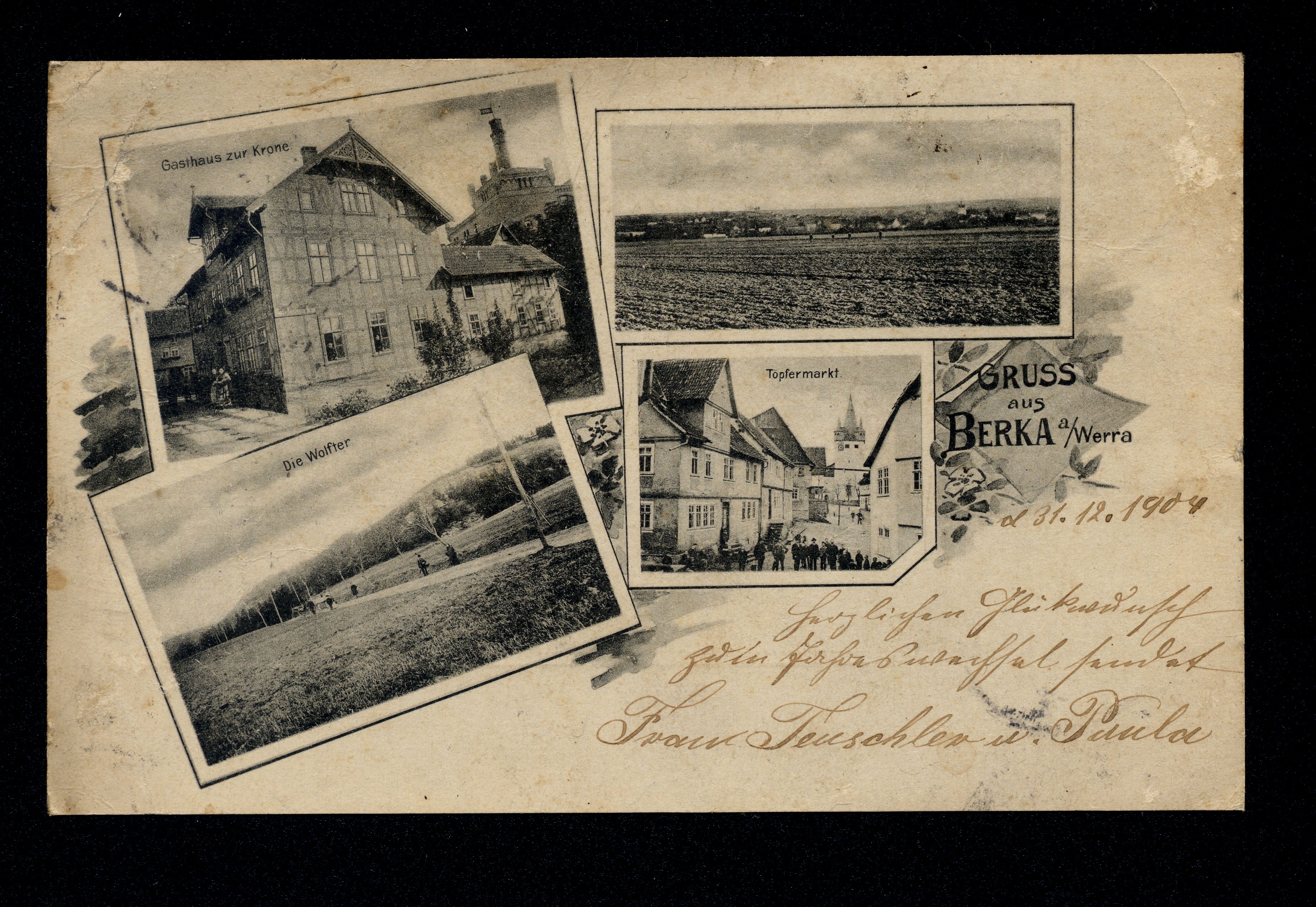Ort Berka Motive Gasthaus zur Krone Panorama Die Wolfter Töpfermarkt Format klein Jahr 1904 Verlag - Bestell- oder Individualnummer - Versanddatum 31.12.1904