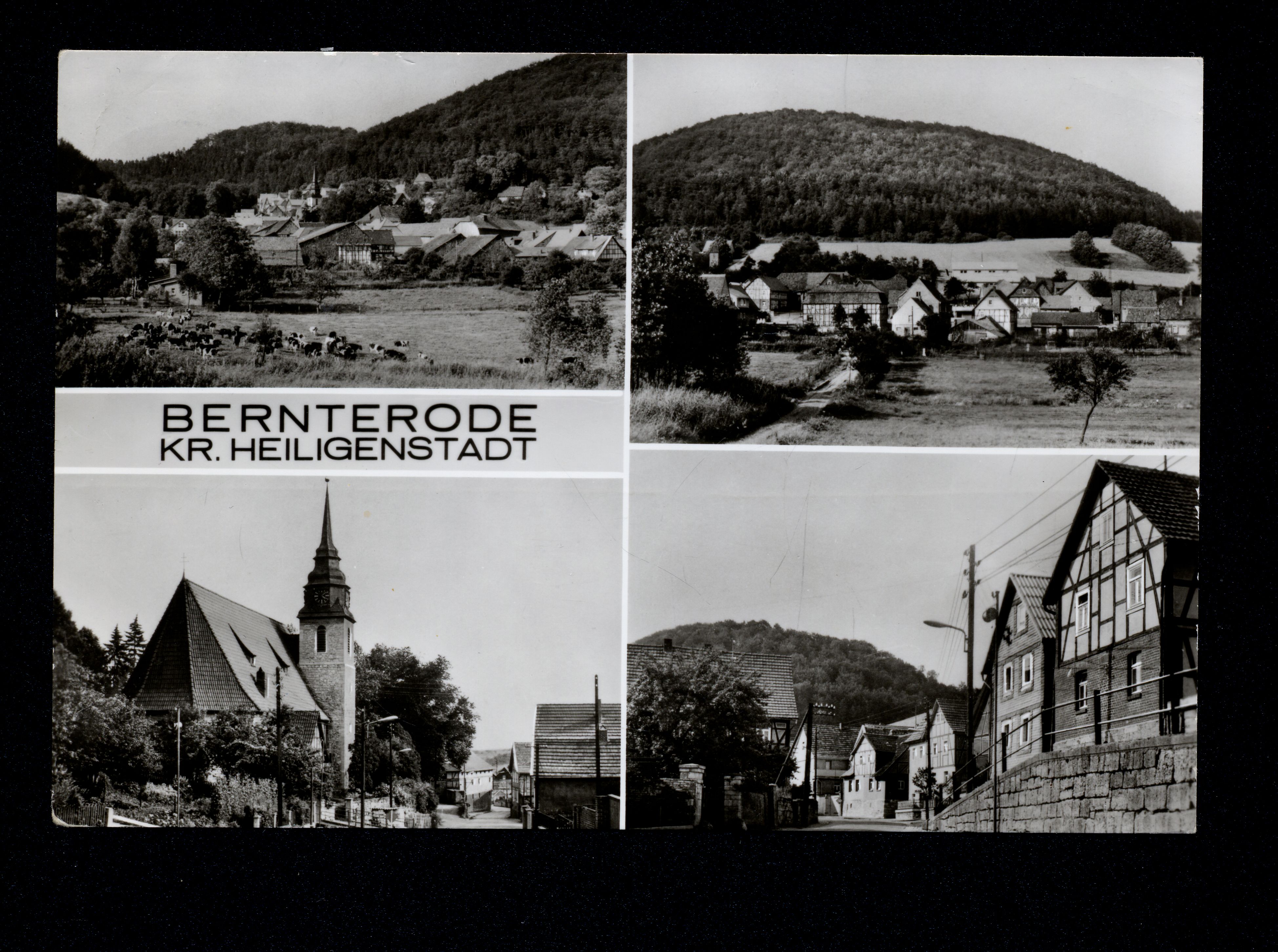 Ort Bernterode (bei Heilbad Heiligenstadt) Motive Teilansicht Straßenansicht St. Cyriakus-Kirche Format groß Jahr 1988 Verlag Bild und Heimat, Reichenbach i. V. (VEB Bild und Heimat) Bestell- oder Individualnummer A 1/B 14/88 IV-483 01 09 06 078