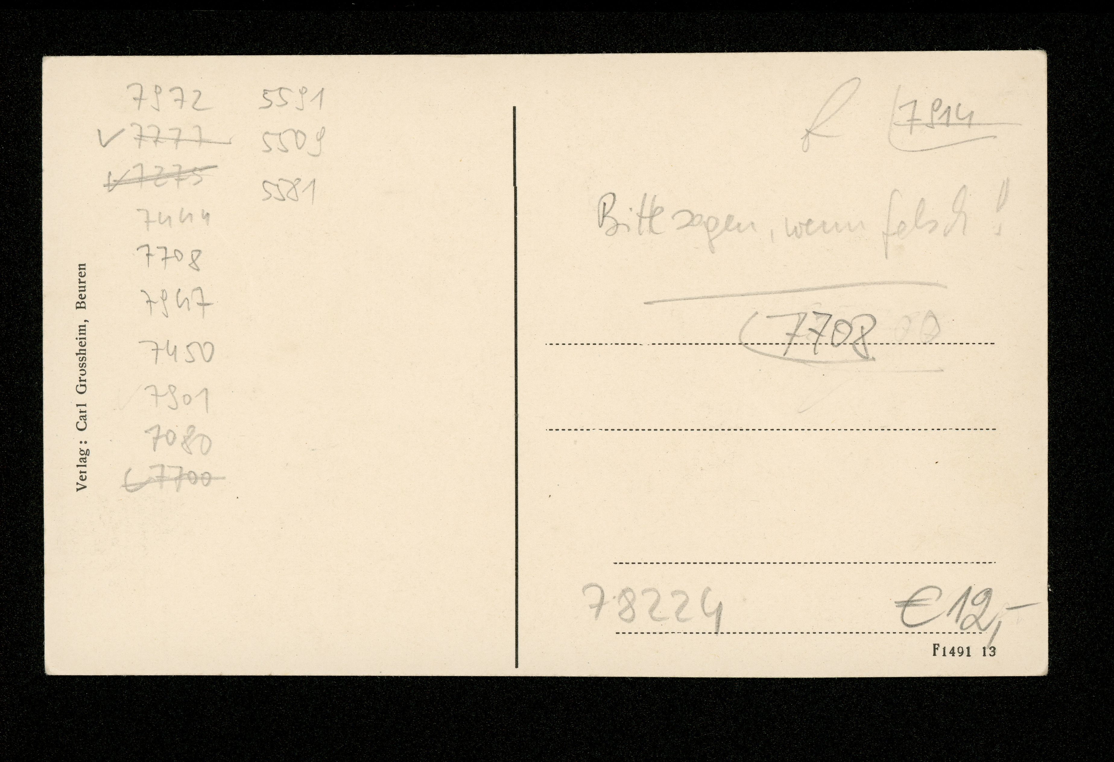 Ort Beuren Motive Kapelle Klostergut Beuren Scharfenstein Geschäftshaus der Fa. Johannes Osburg Format klein Verlag Carl Großheim, Beuren Bestell- oder Individualnummer F1491 13 Tags Burg Scharfenstein