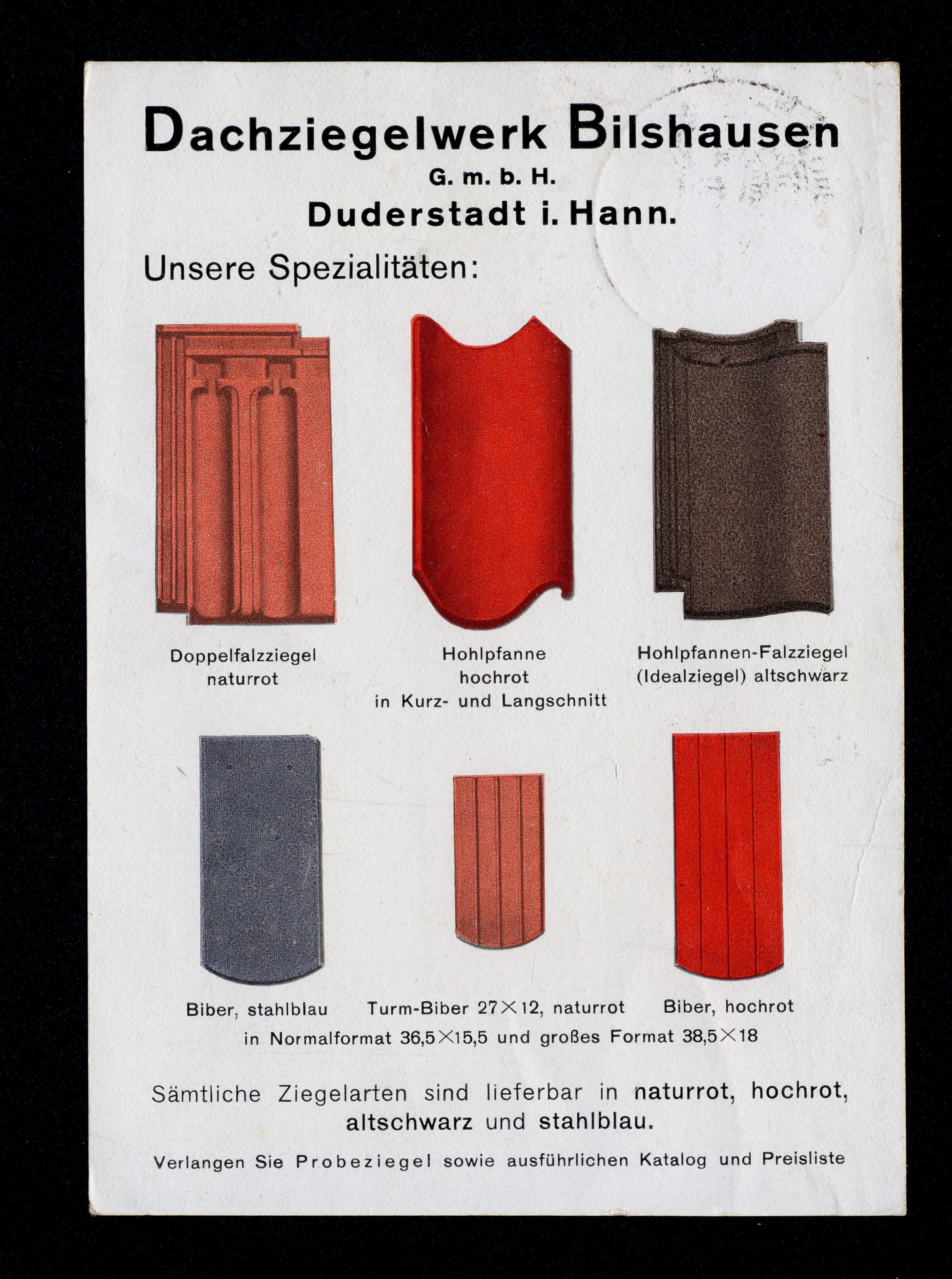 Ort Bilshausen Motive Dachziegelwerk Bilshausen G.m.b.H. Format groß Jahr 1930 Verlag - Bestell- oder Individualnummer - Tags Jacobi Tonwerke GmbH