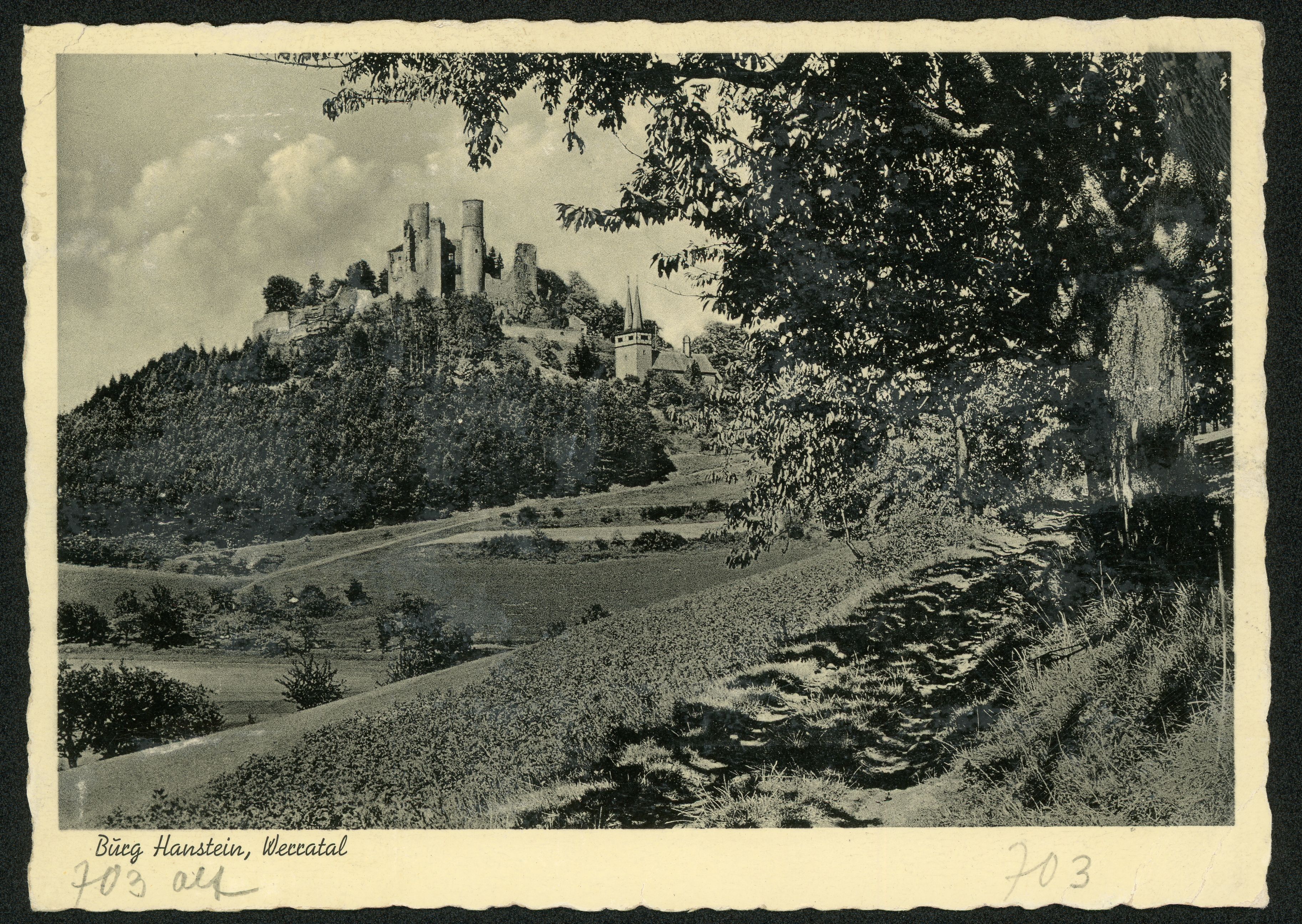 Ort Bornhagen Motive Burg Hanstein, Werratal Format klein Verlag Aloys Mecke, Duderstadt Bestell- oder Individualnummer Nr. 703 G 61 Tags Katholische Kirche Rimbach
