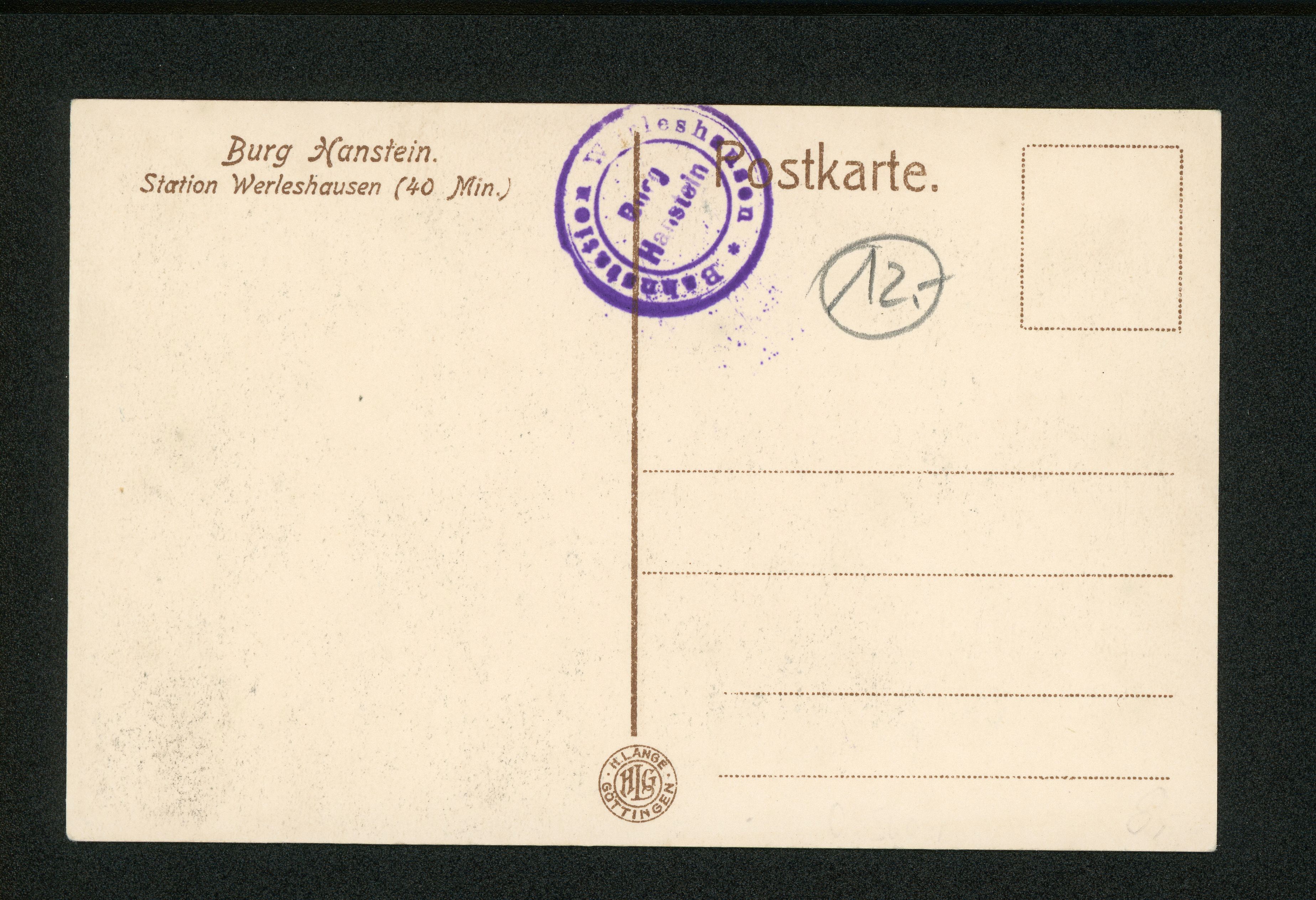 Ort Bornhagen Motive Hanstein-Burgtor Format klein Verlag H. Lange, Göttingen Bestell- oder Individualnummer -