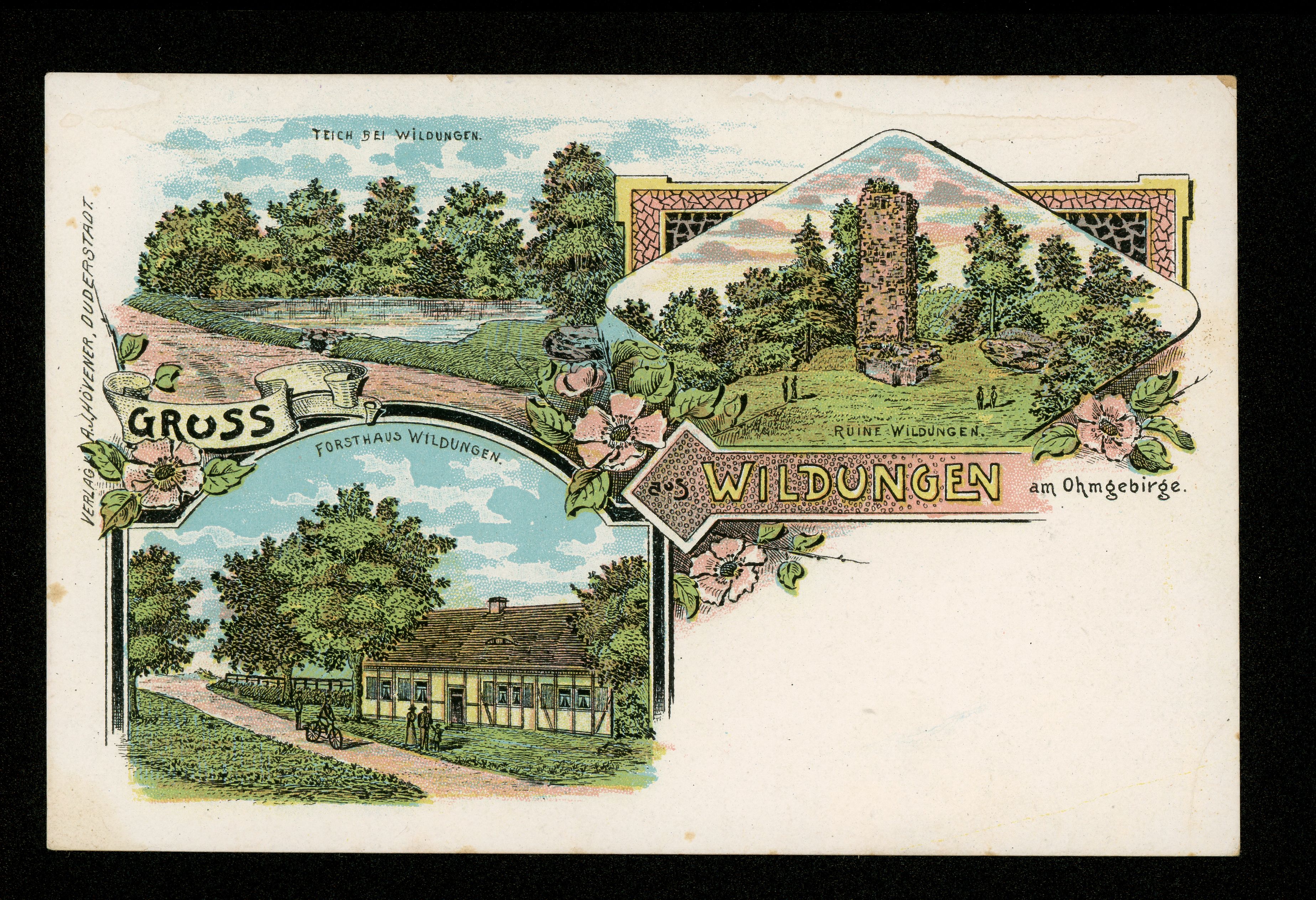 Ort Brehme Motive Teich bei Wildungen Ruine Wildungen Forsthaus Wildungen Format klein Verlag Anton Julius Hövener, Duderstadt (Georg Hövener) Bestell- oder Individualnummer - Tags Forsthaus Unter-Wildungen Gasthaus Wüstung Wildungen Wildunger Teich