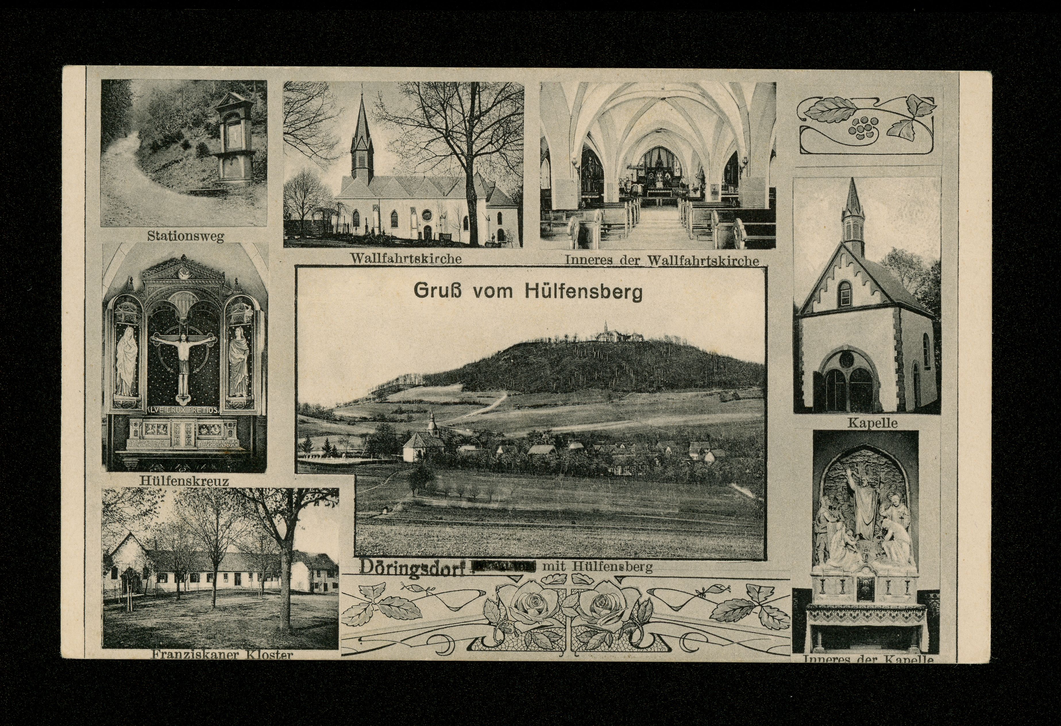 Ort Döringsdorf Motive Döringsdorf mit Hülfensberg Stationsweg Hülfenskreuz Franziskaner Kloster Wallfahrtskirche Inneres der Wallfahrtskirche Kapelle Inneres der Kapelle Format klein Verlag J.K.i.E. Bestell- oder Individualnummer 2446 Tags Geismar