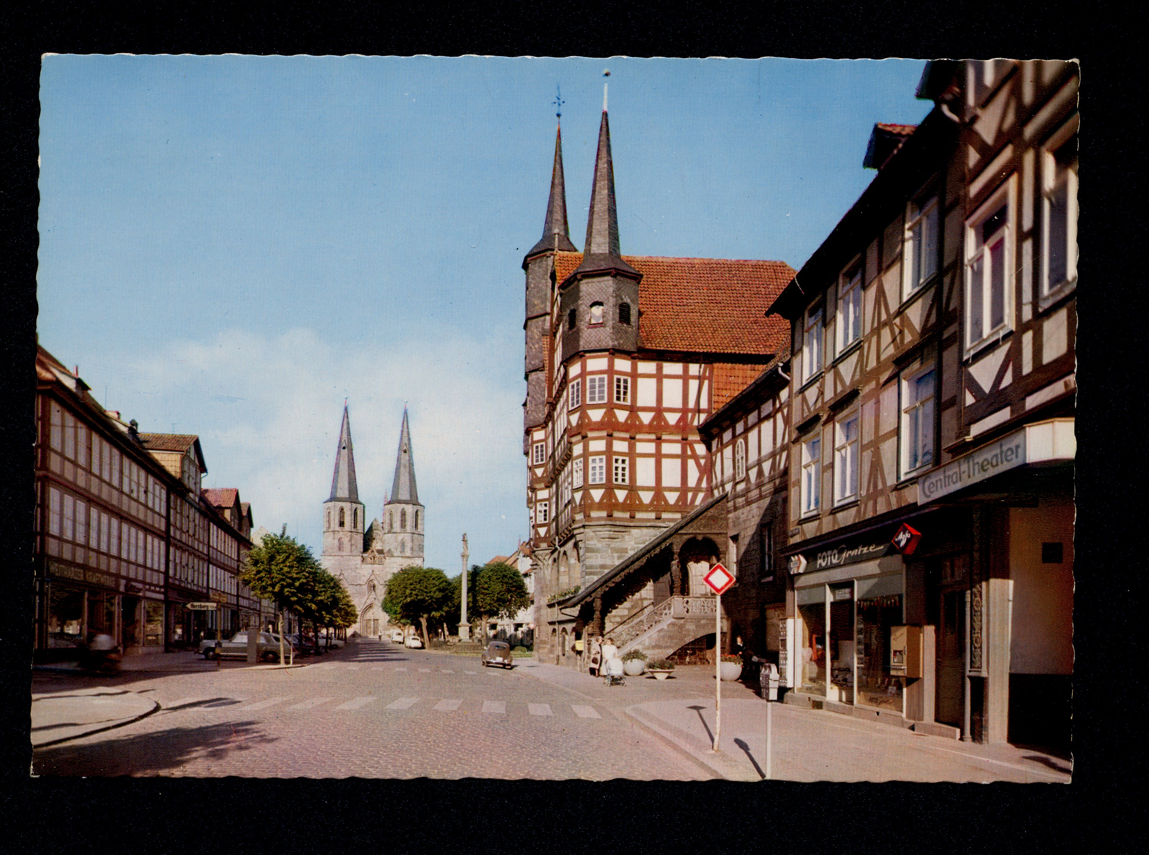 Ort Duderstadt Motive Marktstraße mit Rathaus und St.-Cyriakus-Kirche Format groß Jahr 1963 Verlag Cramers Kunstanstalt, Dortmund Bestell- oder Individualnummer Dd 506 64/5 Tags Central-Theater Kino Foto Gratze