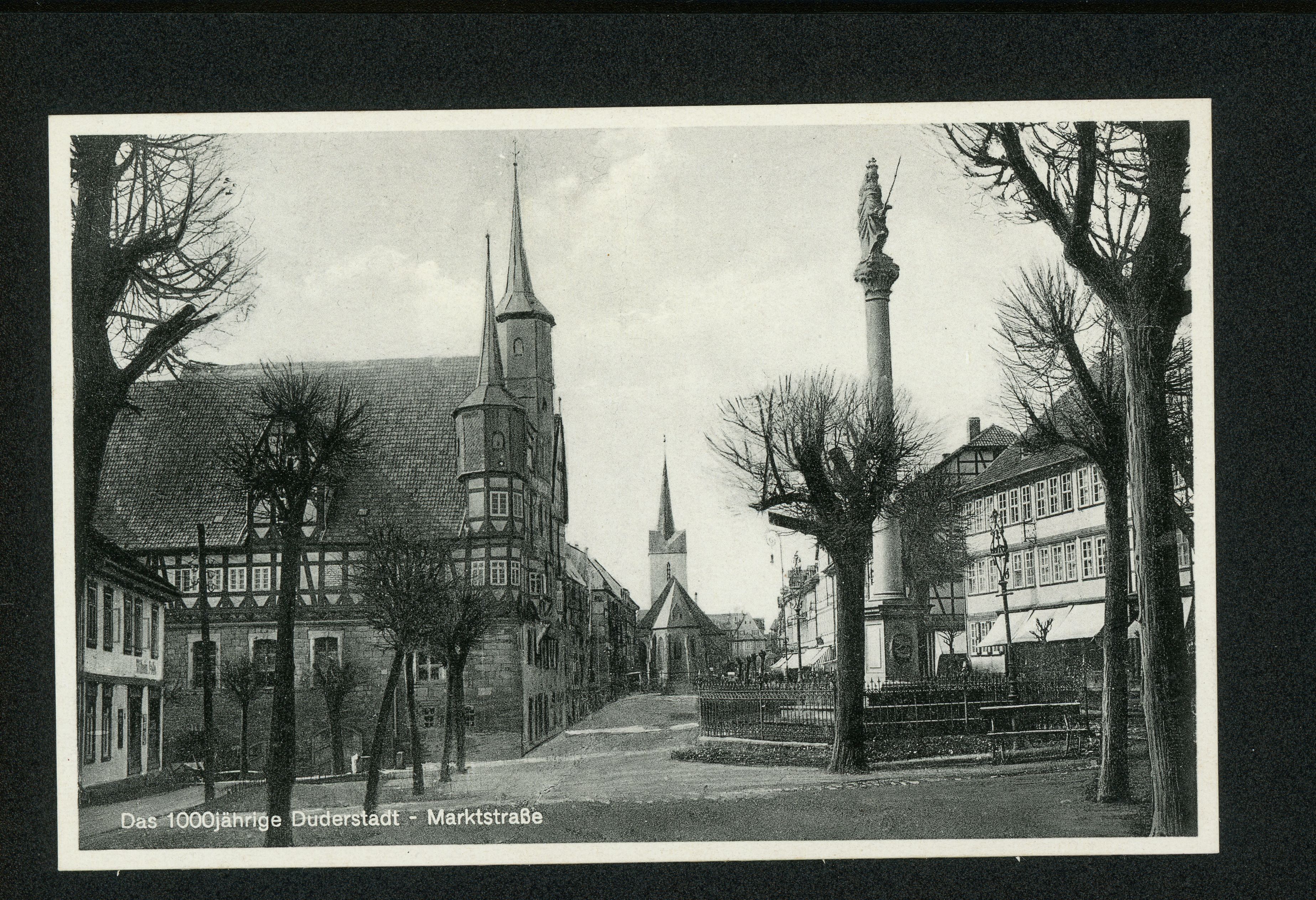 Ort Duderstadt Motive Marktstraße Format klein Verlag Aloys Mecke, Duderstadt Bestell- oder Individualnummer Nr 556 r 39 Tags Rathaus Mariensäule St. Cyriakus