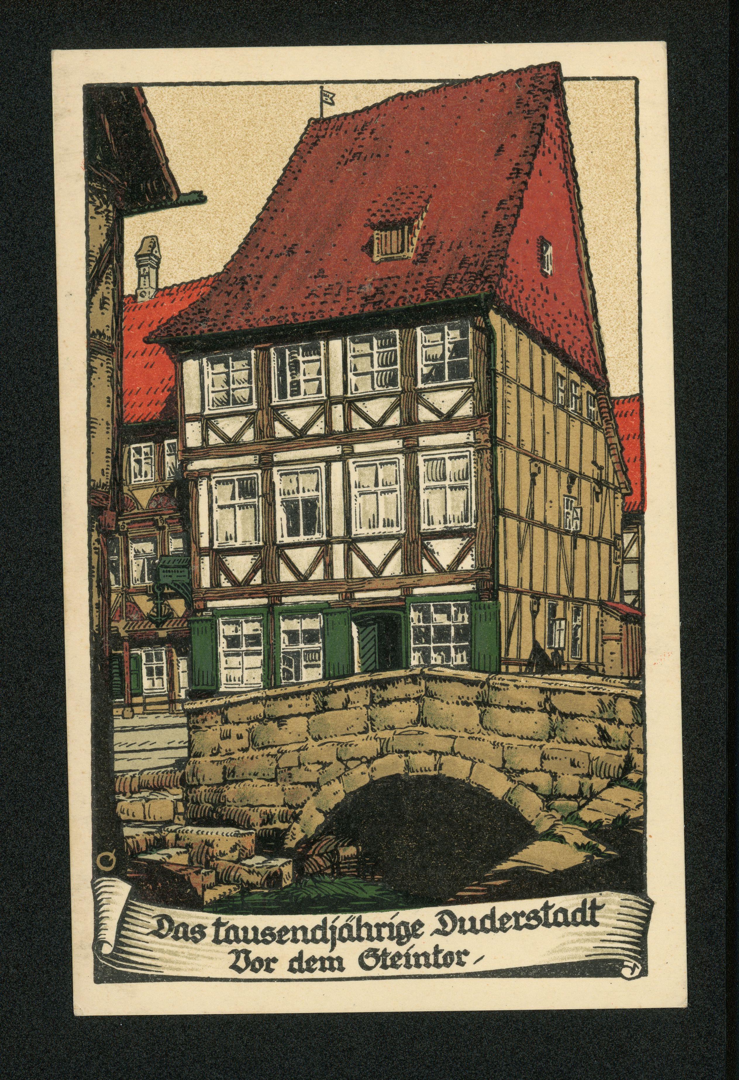 Ort Duderstadt Motive Vor dem Steintor ''Restaurant zum Anker'' Altes Fachwerkhaus vor dem Steintor Format klein Verlag Gebrüder Seseke, Duderstadt Bestell- oder Individualnummer - Tags Gasthaus Künstler=Stein=Zeichnung Sandwasserbrücke