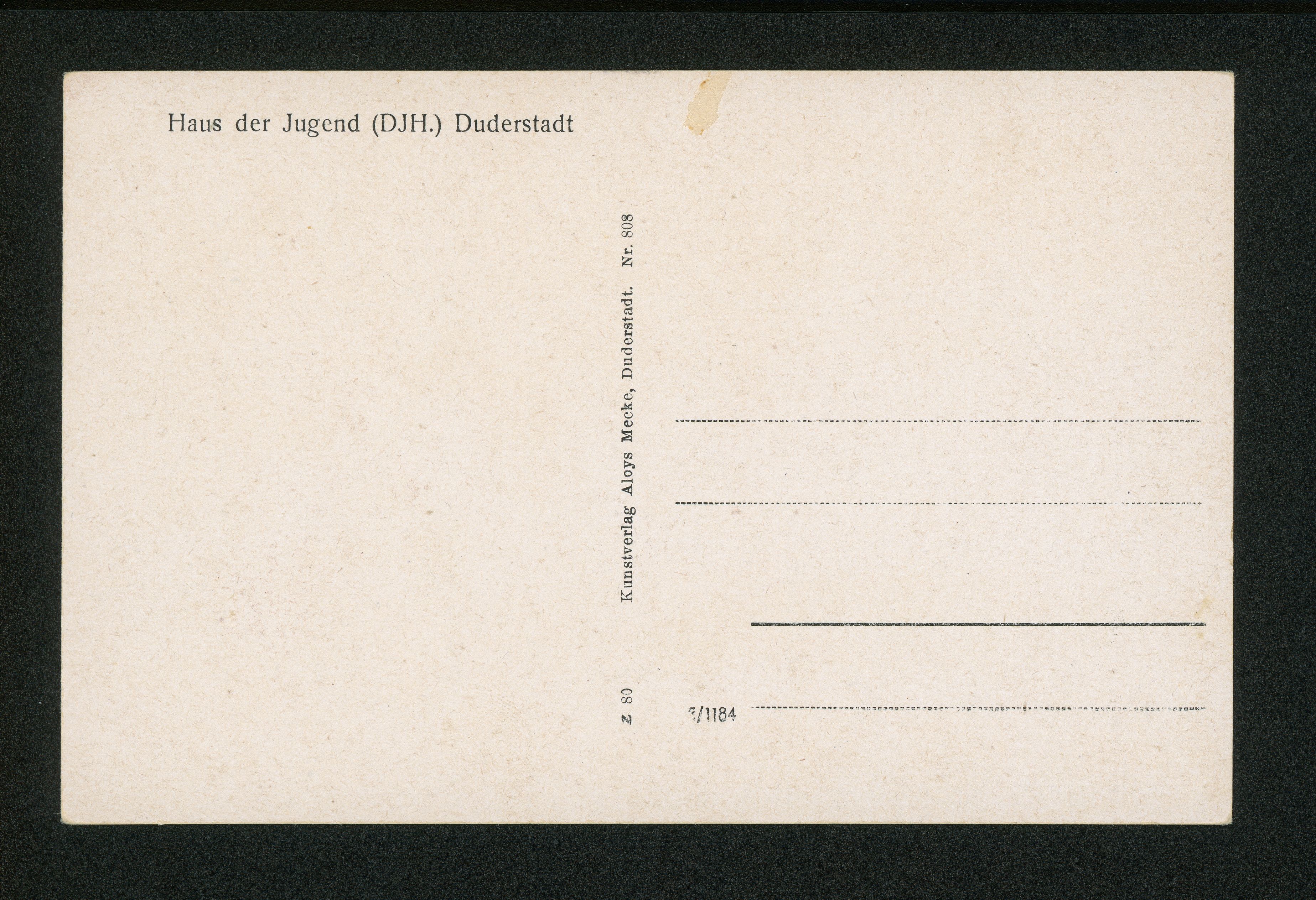 Ort Duderstadt Motive Haus der Jugend und Badeanstalt Format klein Verlag Aloys Mecke, Duderstadt Bestell- oder Individualnummer Nr. 808 z 80 Tags Freibad Schwimmbad DJH Jugendherberge