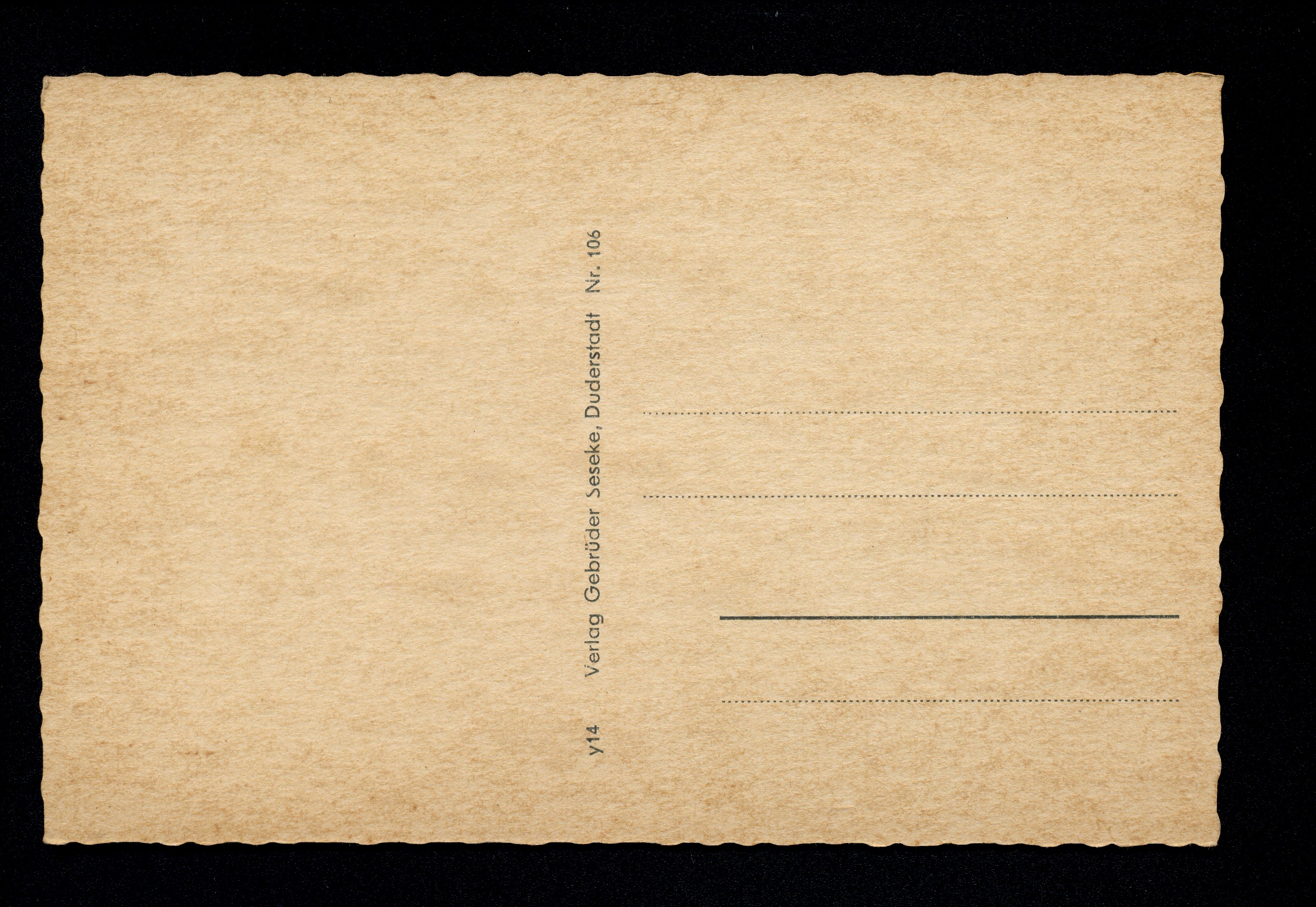 Ort Duderstadt Motive Rathaus Rathaustreppe Duderstädter Anreischken St. Cyriakuskirche Stadtmauer mit Westerturm Marktstraße Kriegergedächtnisstätte Westertor Format klein Verlag Gebrüder Seseke, Duderstadt Bestell- oder Individualnummer Nr. 106 y14 Tags Anreischke Kriegerdenkmal Mauergasse