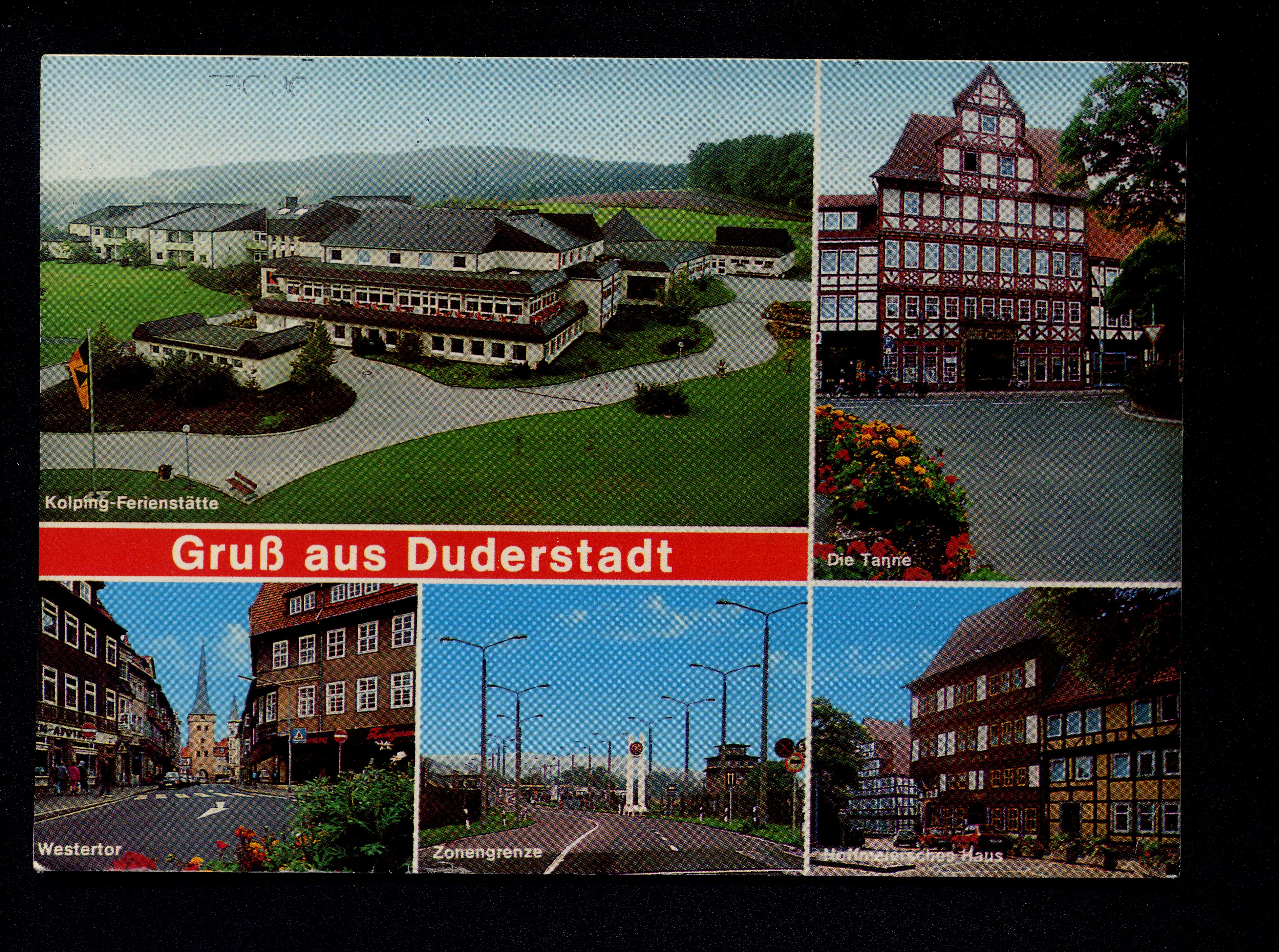 Ort Duderstadt Motive Kolping-Ferienstätte Die Tanne Westertor Zonengrenze Hoffmeiersches Haus Format groß Jahr 1990 Verlag - Bestell- oder Individualnummer - Versanddatum 05.05.1990 Tags Ferienparadies Pferdeberg Kolping Familienferienzentrum Kolping-Familienferienstätte Hotel zur Tanne Westerturm Teistungen Gerblingerode