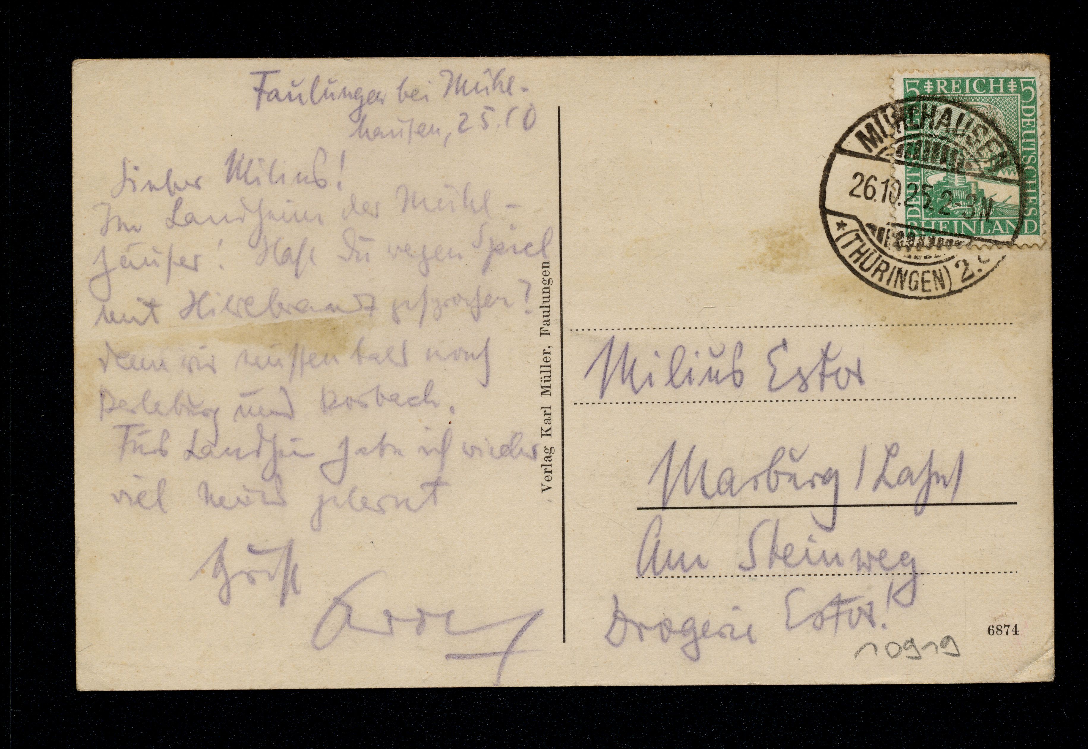 Ort Faulungen Motive Panorama Format klein Jahr 1925 Verlag Karl Müller, Faulungen Bestell- oder Individualnummer 6874 Versanddatum 26.10.1925