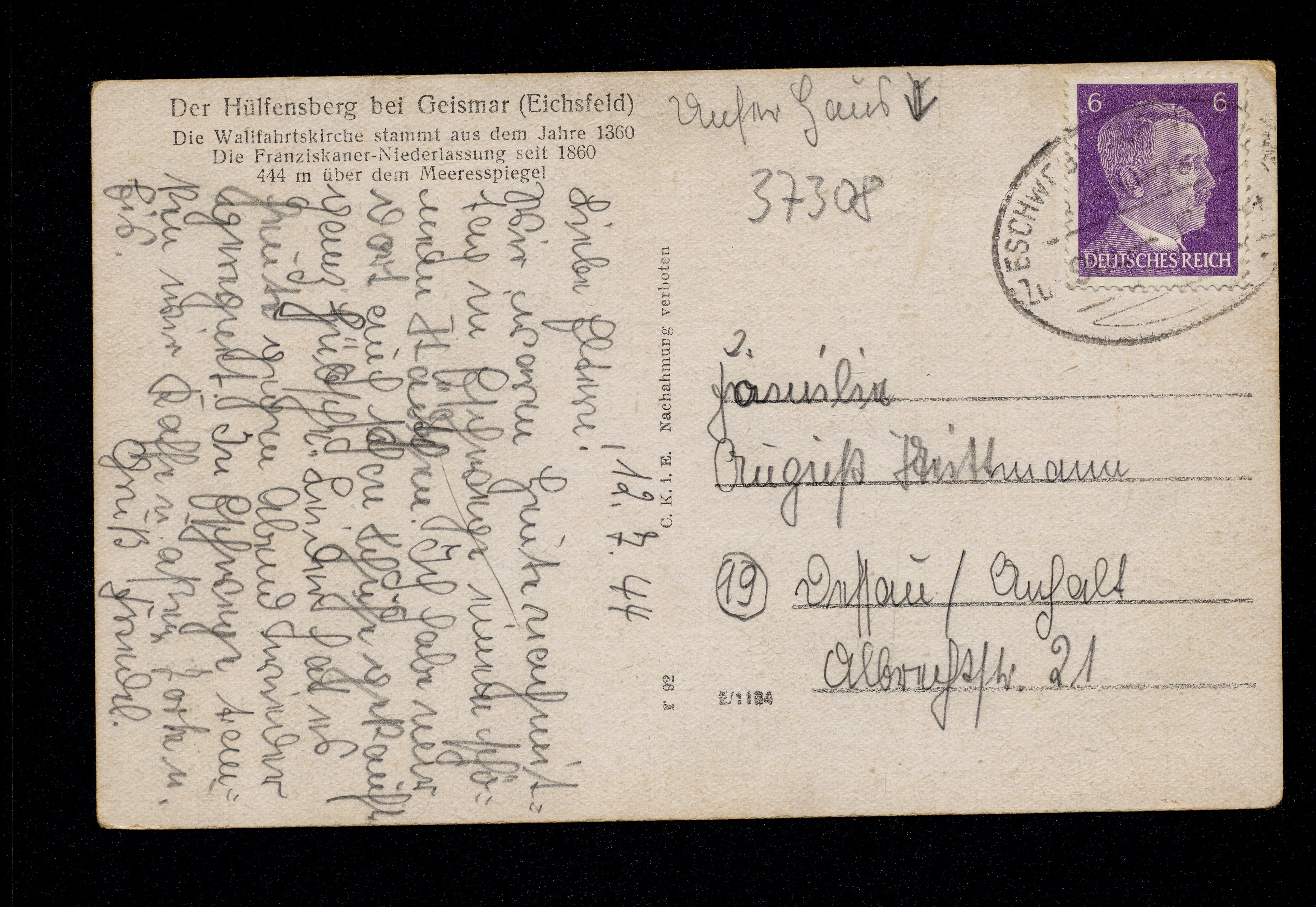 Ort Geismar Motive Panorama Format klein Jahr 1944 Verlag C.K. in E. Bestell- oder Individualnummer r 92 Versanddatum 13.07.1944