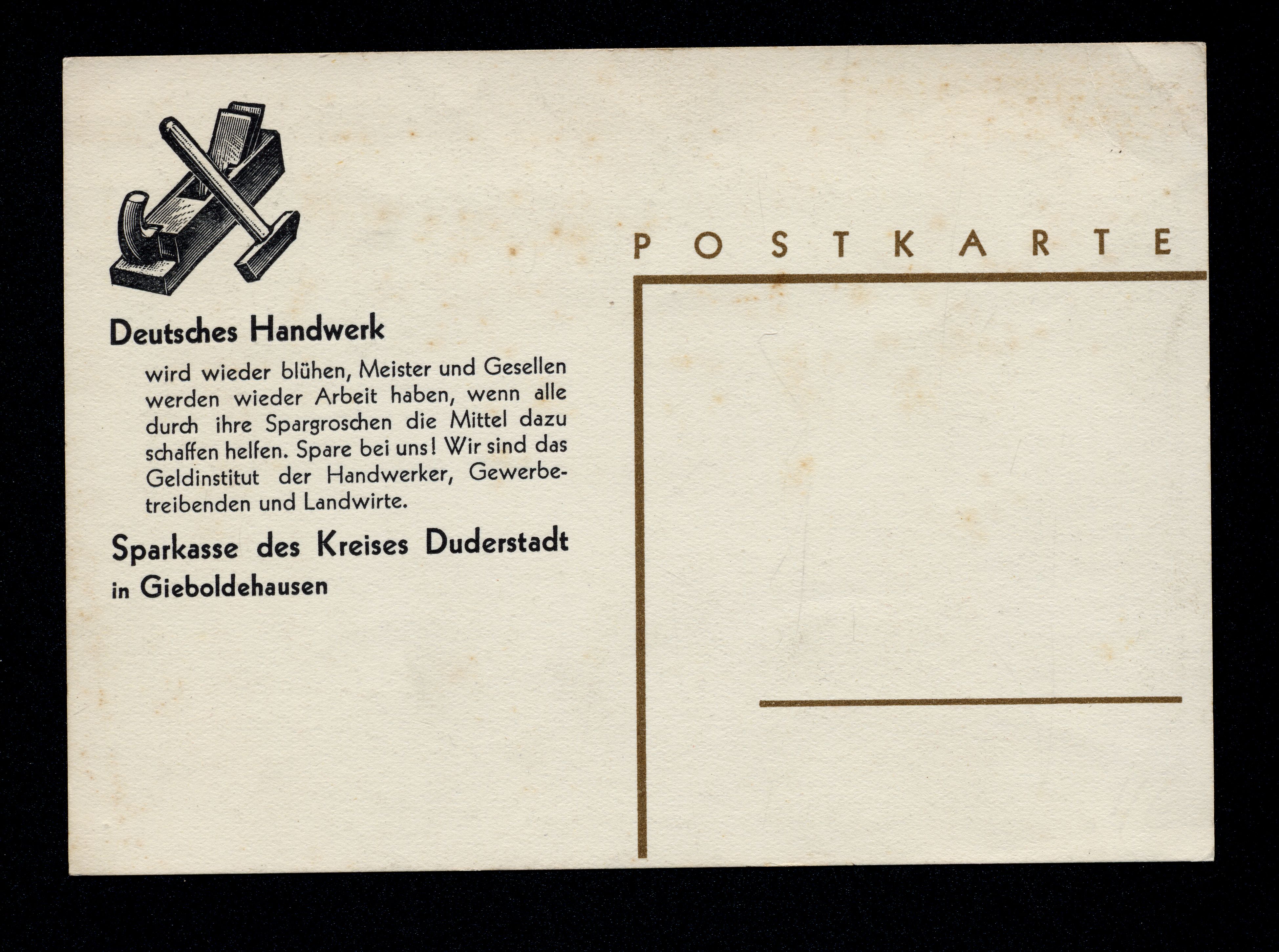 Ort Gieboldehausen Beschreibung Künstler: Paul Fischer STUT. 34. Motive Sparkasse des Kreises Duderstadt in Gieboldehausen Deutsches Handwerk Format groß Verlag - Bestell- oder Individualnummer -