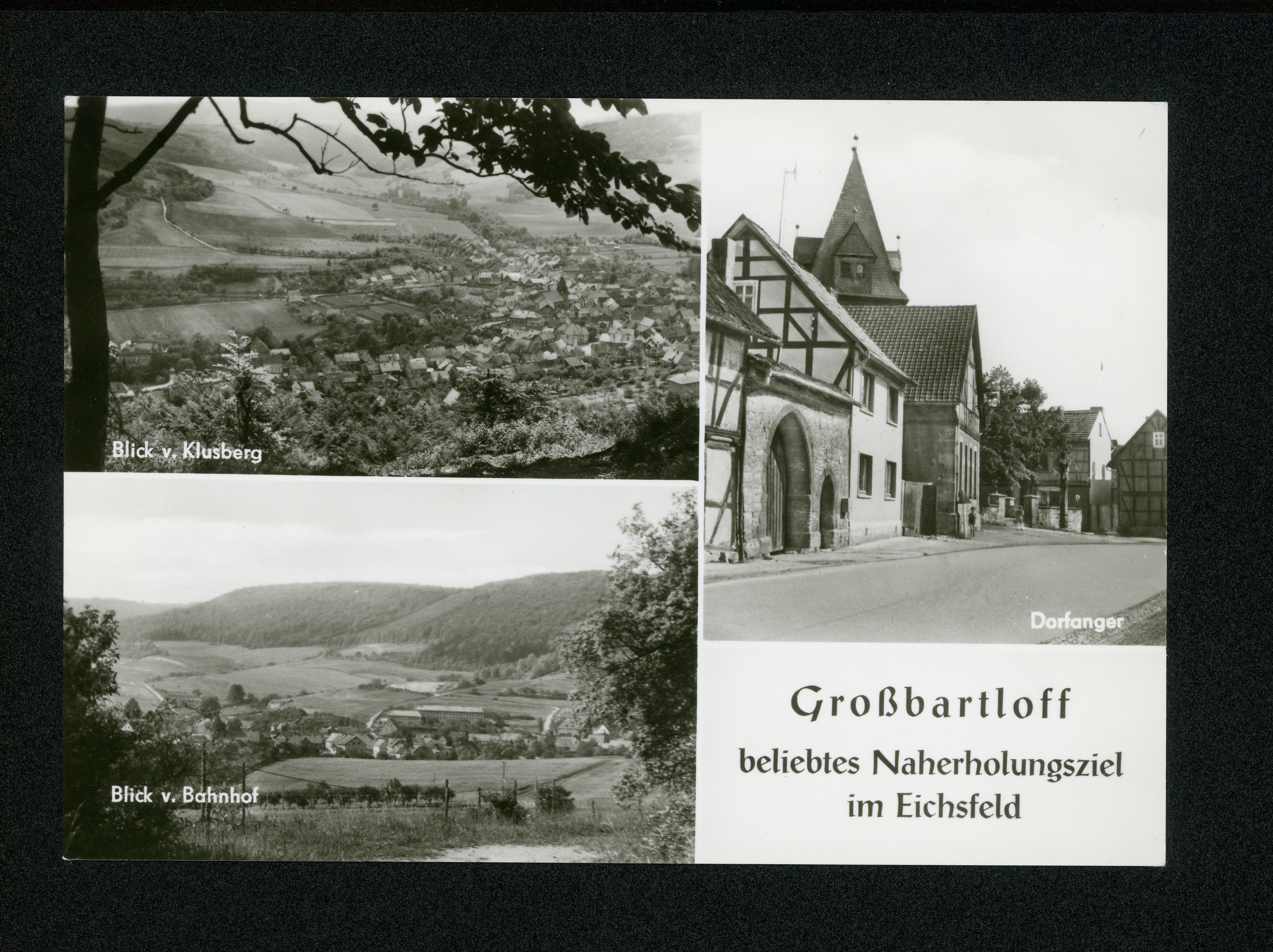 Ort Großbartloff Motive Blick v. Klusberg Dorfanger Blick v. Bahnhof Format groß Jahr 1977 Verlag Hans C. Schmiedicke, Leipzig Bestell- oder Individualnummer L 23/77 IV-14-483 HS 1945