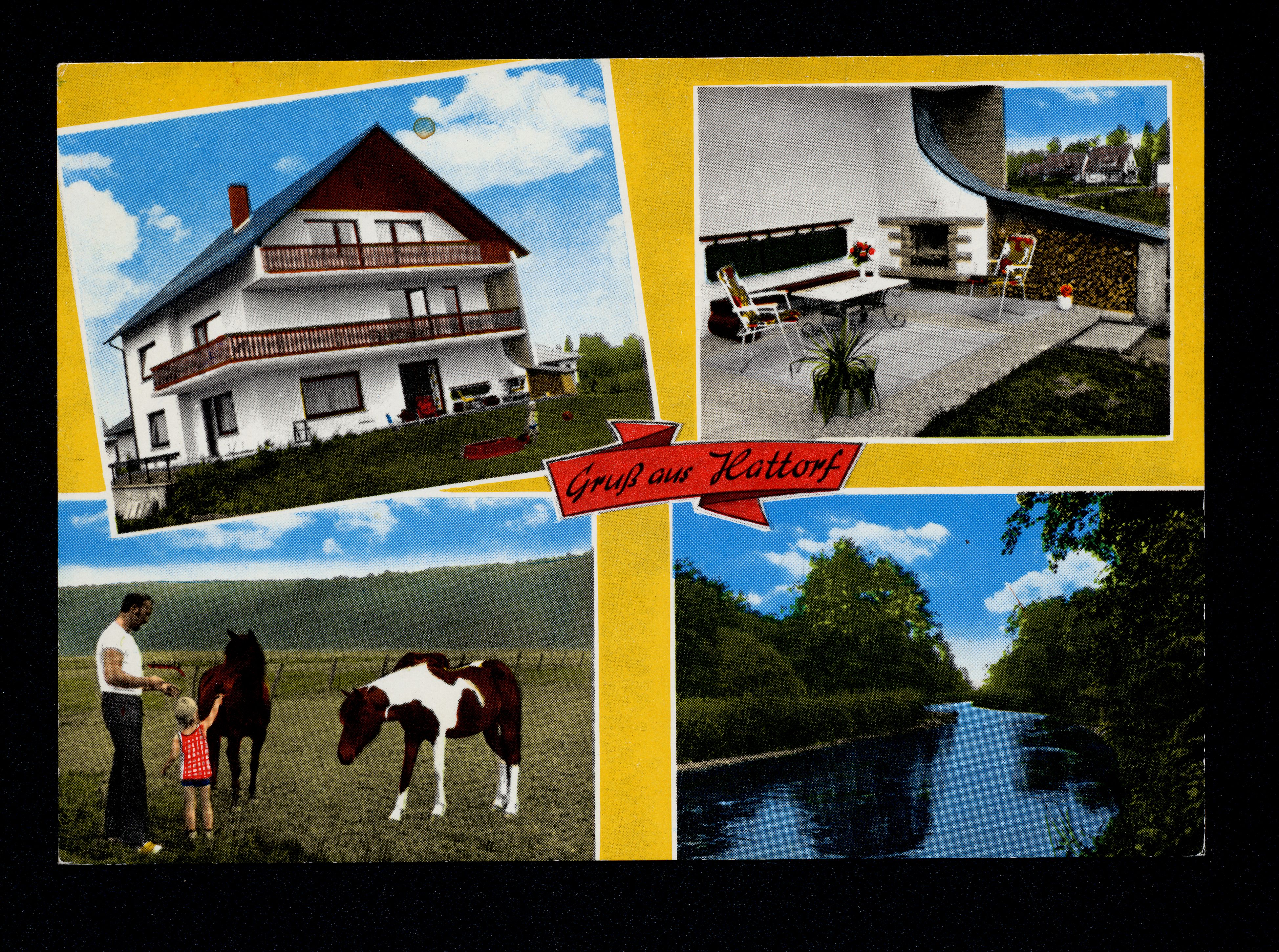 Ort Hattorf Motive Pension Ludwig, Fliederweg Pferde Partie an der Sieber Format groß Verlag Gebrüder Seseke, Duderstadt Bestell- oder Individualnummer Nr. 955