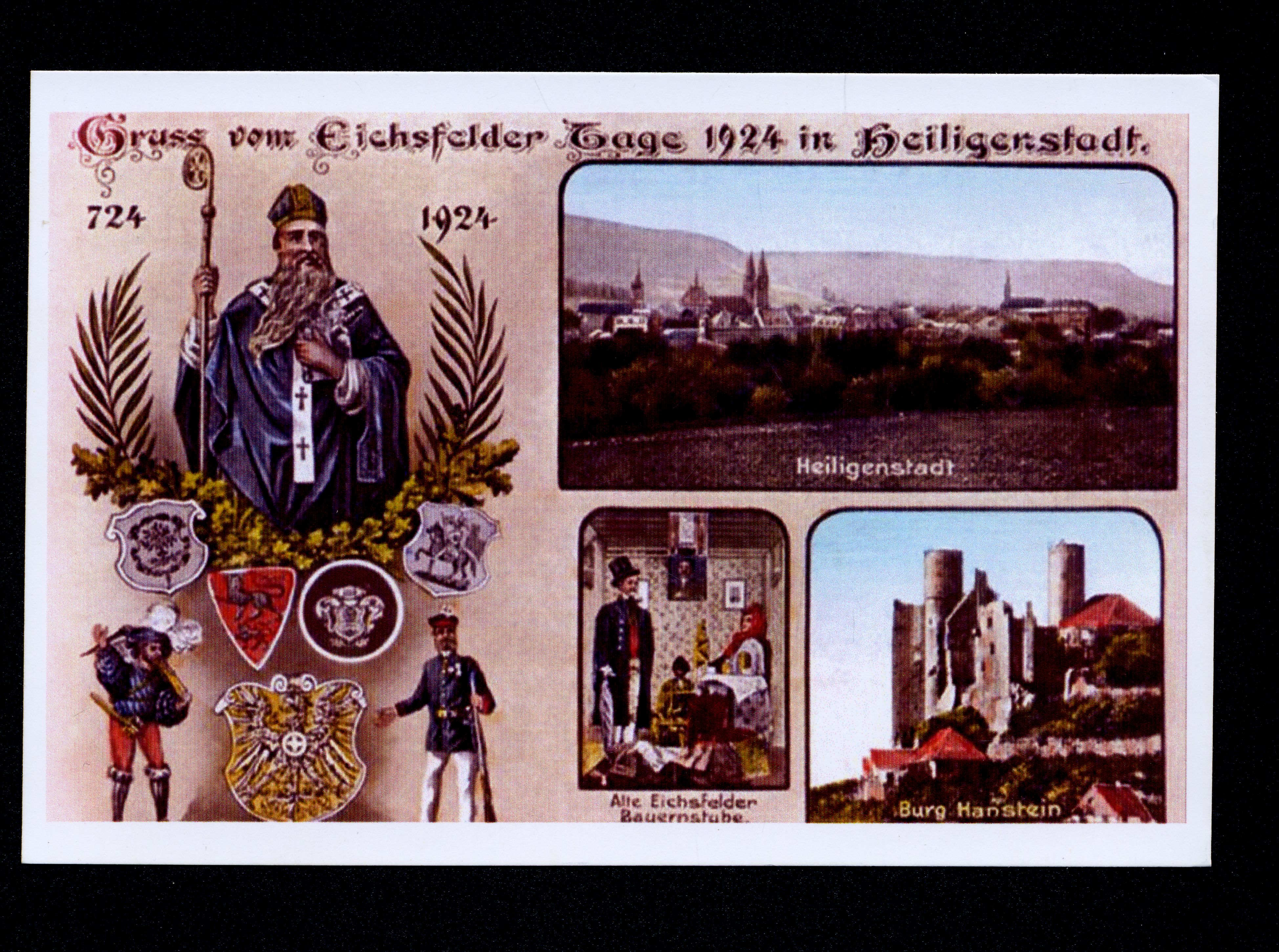 Ort Heiligenstadt Beschreibung Nachdruck Original unter: >> KLICK << Motive Teilansicht Alte Eichsfelder Bauernstube Burg Hanstein Wappen Format groß Verlag - Bestell- oder Individualnummer - Tags Bornhagen Volkstracht