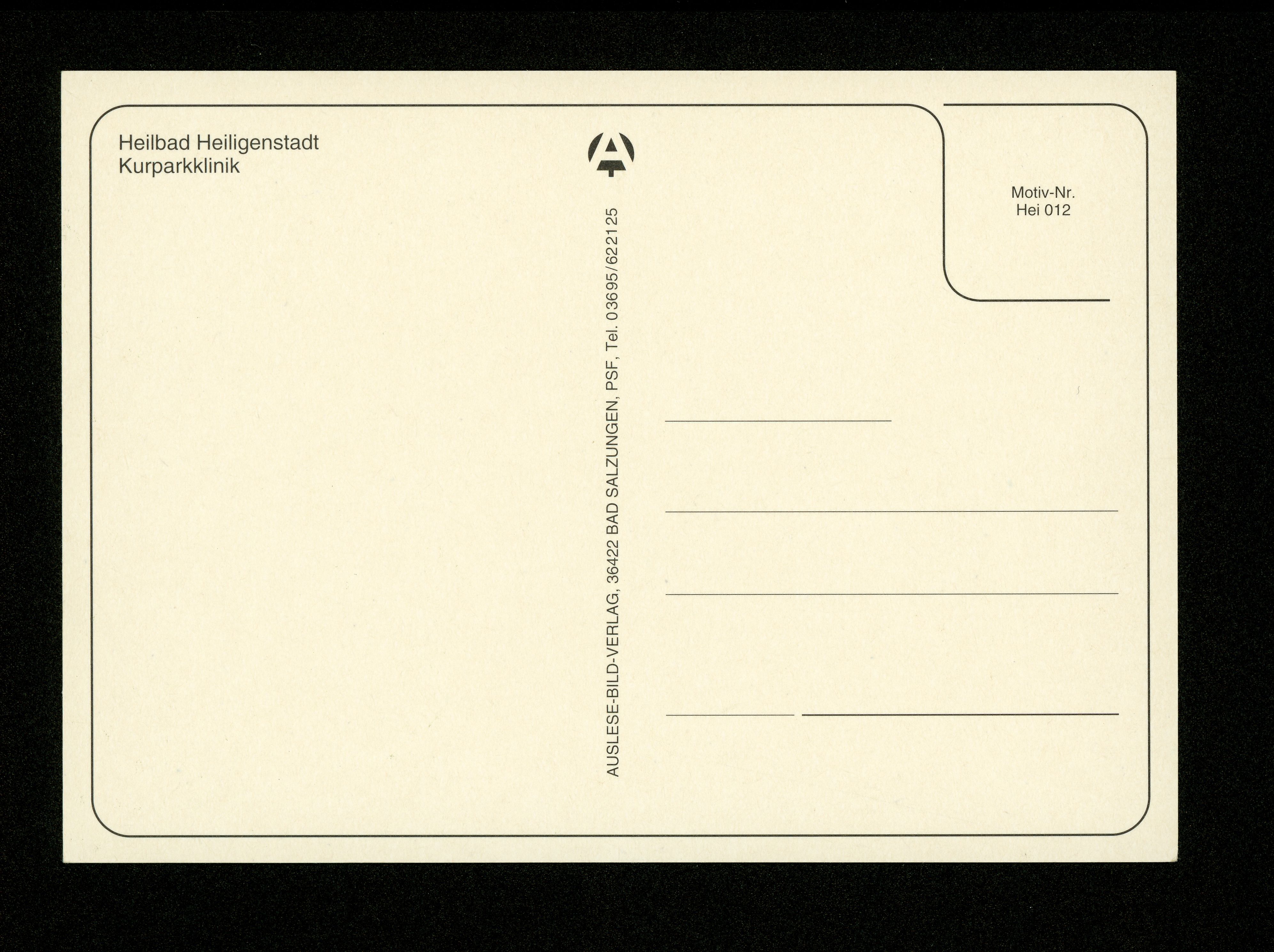 Ort Heiligenstadt Motive Kurparkklinik Format groß Verlag Auslese-Bild-Verlag, Bad Salzungen Bestell- oder Individualnummer Motiv-Nr. Hei 012