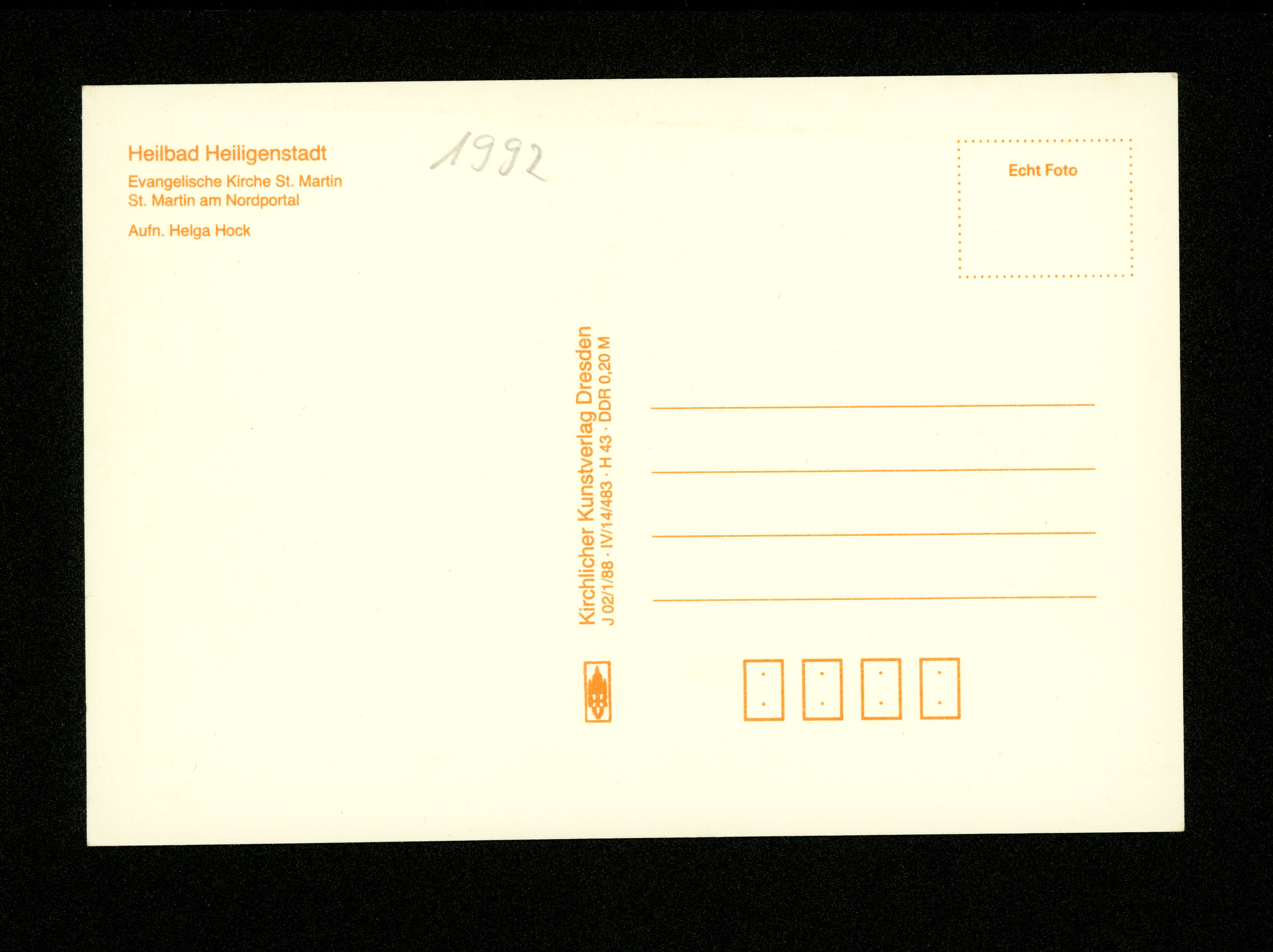 Ort Heiligenstadt Motive Evangelische Kirche St. Martin St. Martin am Nordportal Format groß Jahr 1988 Verlag Kirchlicher Kunstverlag, Dresden Bestell- oder Individualnummer J 02/1/88 IV/14/483 H 43
