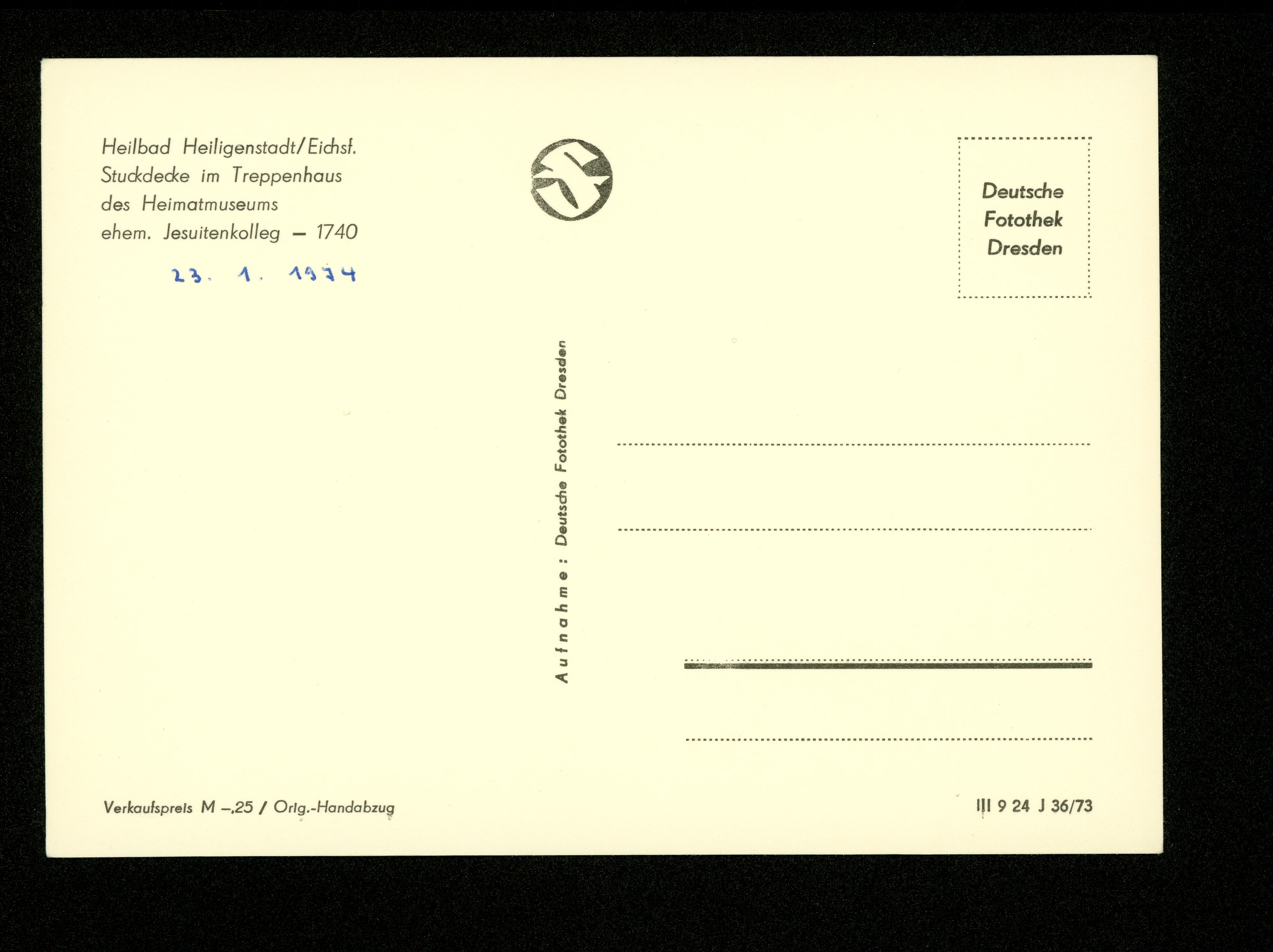 Ort Heiligenstadt Motive Stuckdecke im Treppenhaus des Heimatmuseums, ehem. Jesuitenkolleg Format groß Jahr 1973 Verlag Deutsche Fotothek, Dresden Bestell- oder Individualnummer III 9 24 J 36/73
