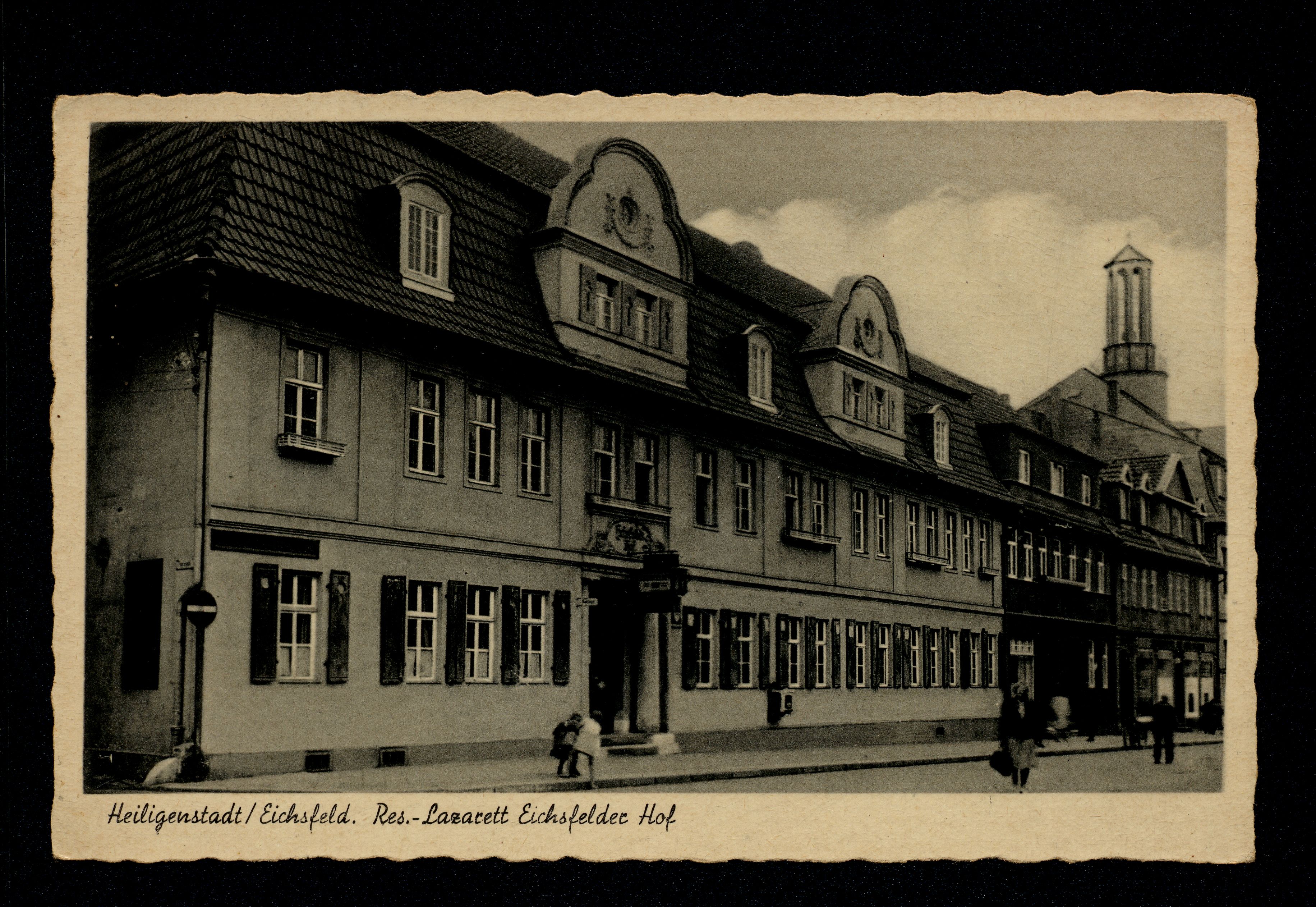 Ort Heiligenstadt Motive Res.-Lazarett Eichsfelder Hof Format klein Verlag Paul Bäcker, Halle/S. Bestell- oder Individualnummer z 61 Tags Gasthaus 2. Weltkrieg