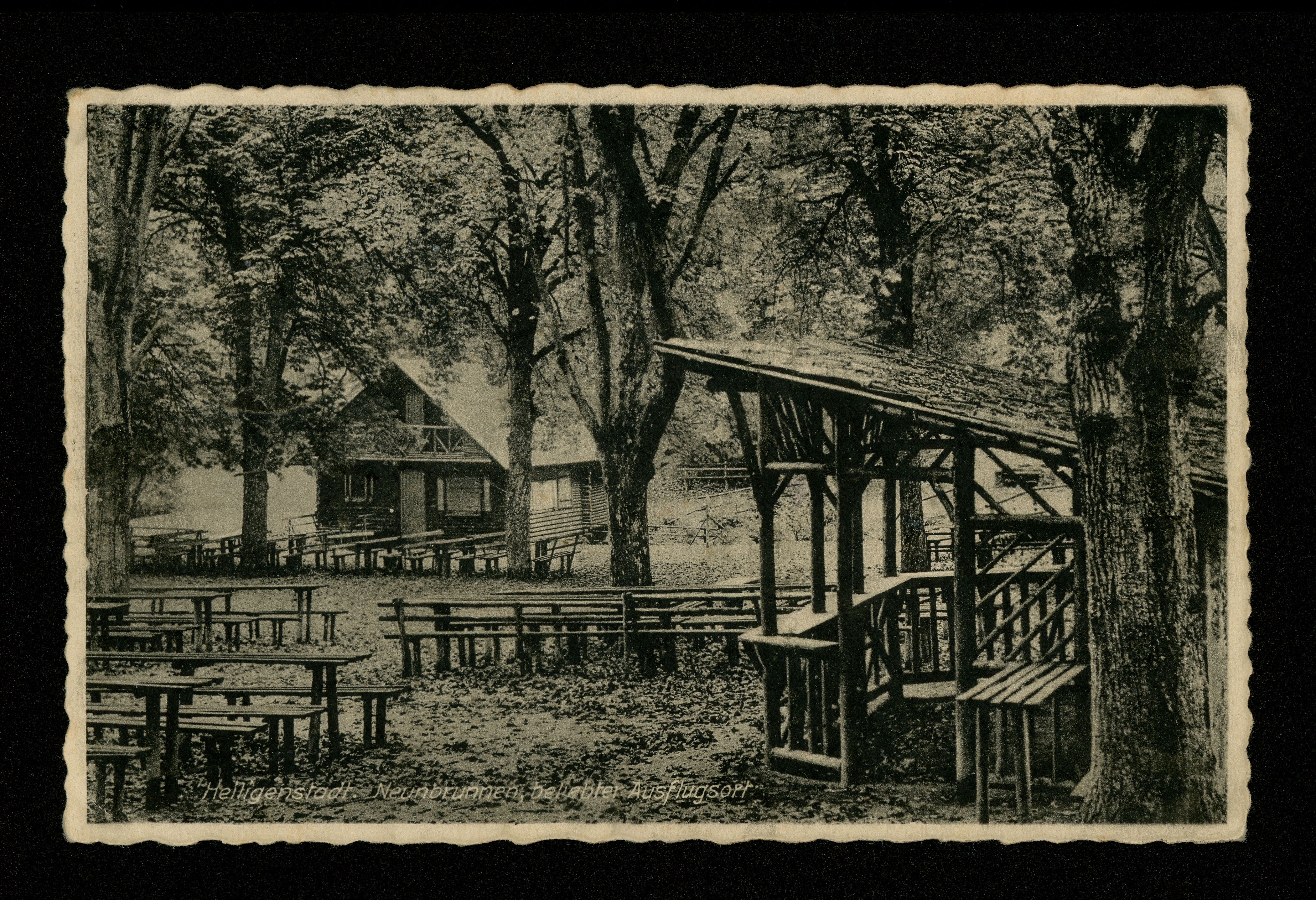 Ort Heiligenstadt Motive Neunbrunnen, beliebter Ausflugsort Format klein Verlag Albert Multhauf, Heiligenstadt Bestell- oder Individualnummer 14369/455 Tags Neun Brunnen Gasthaus