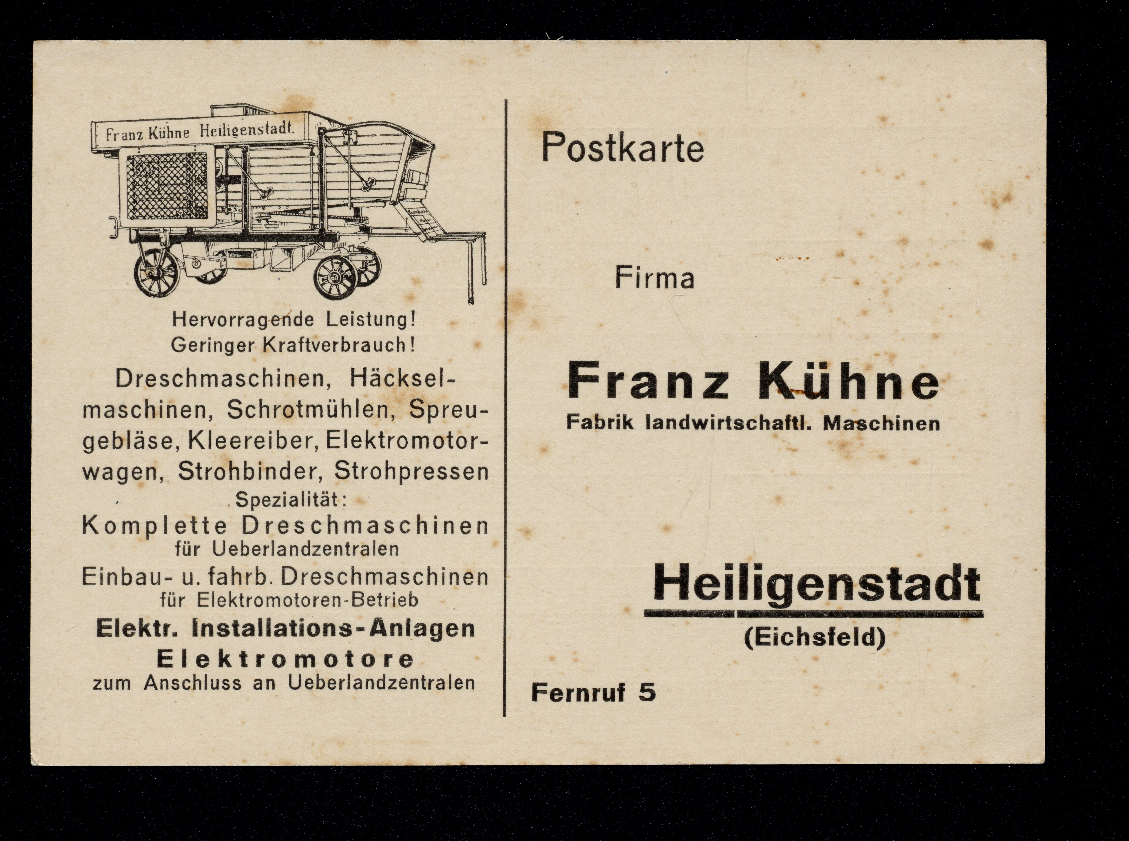 Ort Heiligenstadt Motive Franz Kühne, Fabrik landwirtschftl. Maschinen Format groß Verlag - Bestell- oder Individualnummer - Tags Landwirtschaft Dreschmaschine
