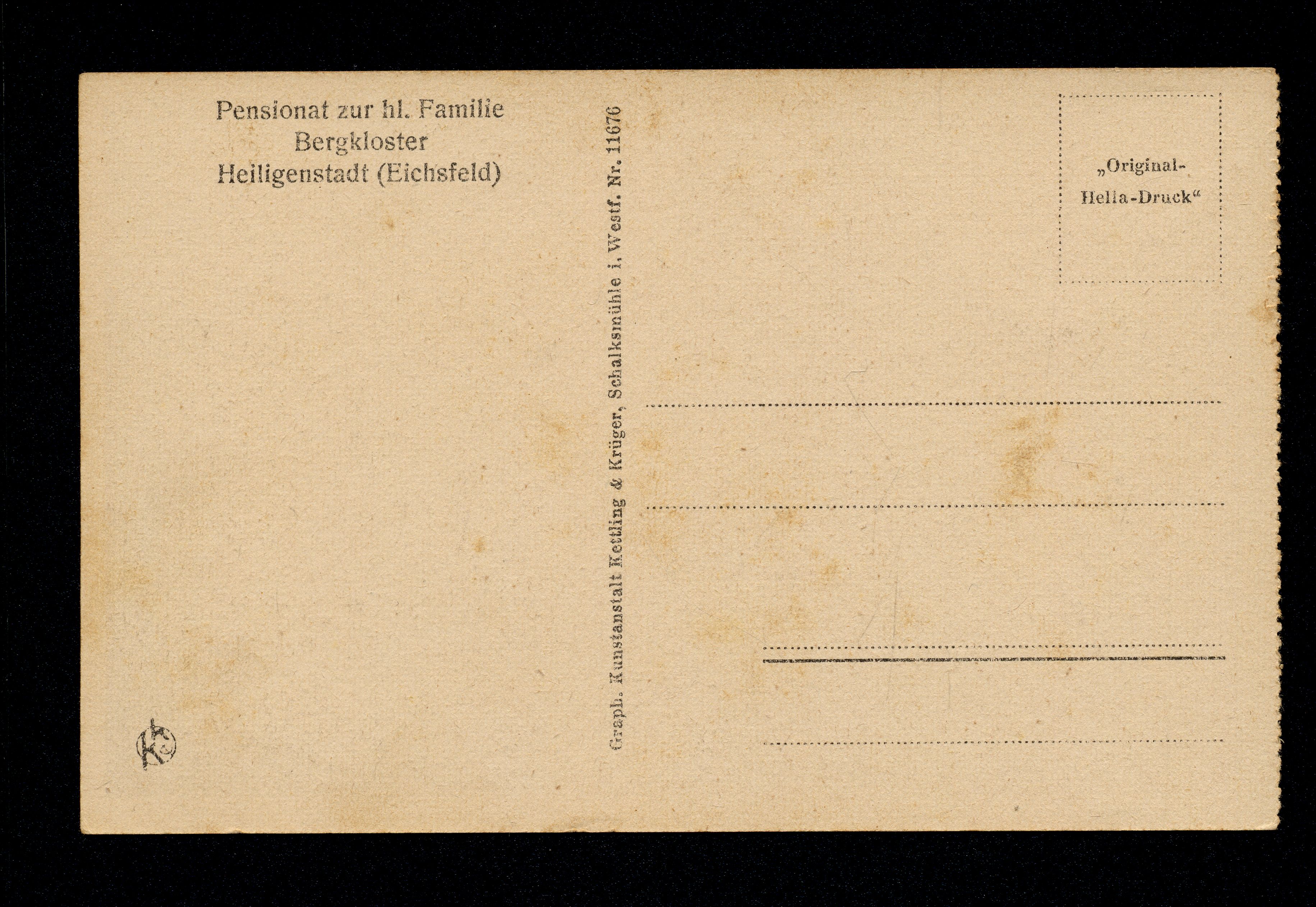 Ort Heiligenstadt Motive Pensionat zur hl. Familie, Bergkloster Blick auf den Schwestern-Friedhof Format klein Verlag Kettling & Krüger, Schalksmühle i. Westf. Bestell- oder Individualnummer Nr. 11676