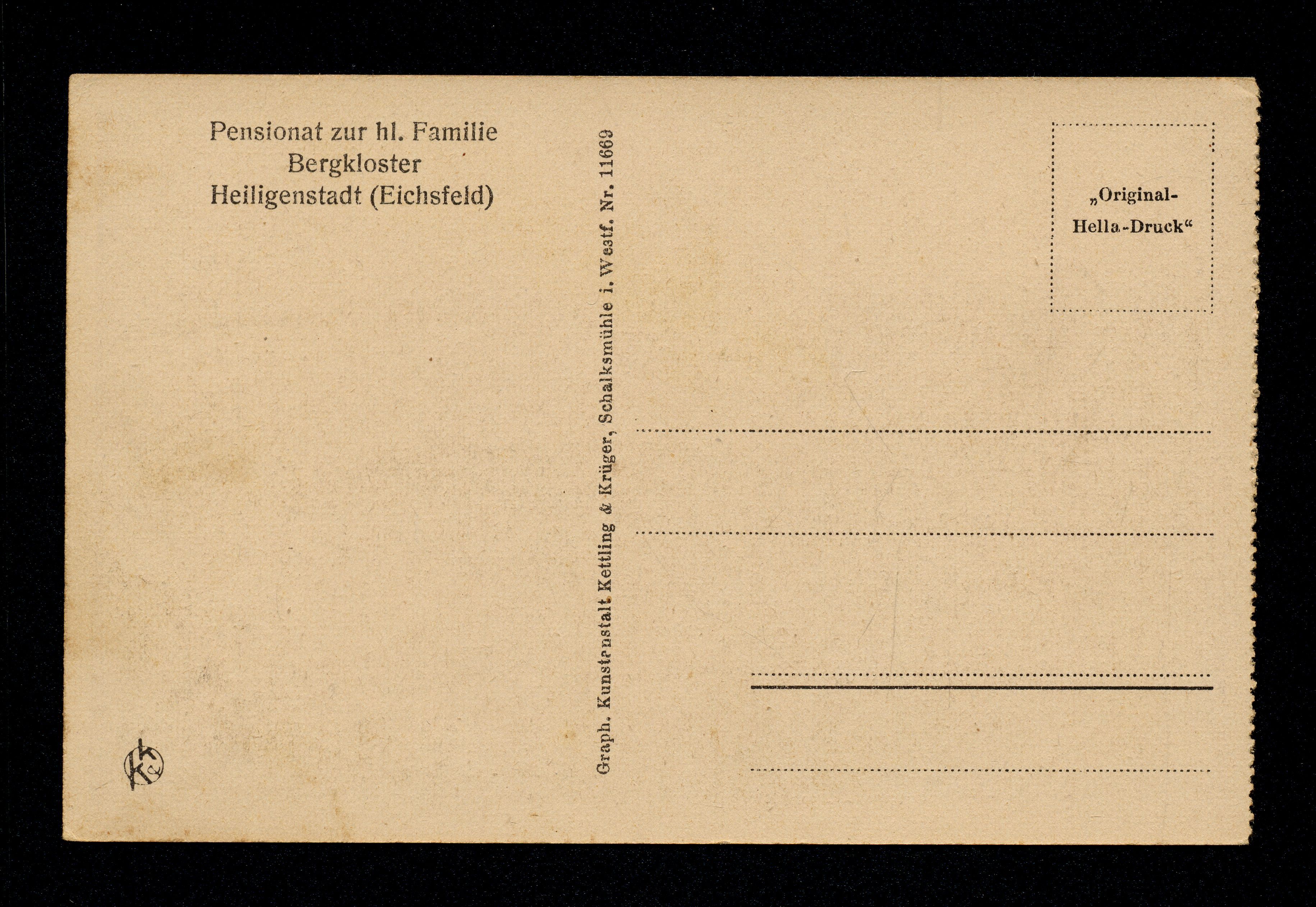 Ort Heiligenstadt Motive Pensionat zur hl. Familie, Bergkloster Beim Spiel Format klein Verlag Kettling & Krüger, Schalksmühle i. Westf. Bestell- oder Individualnummer Nr. 11669