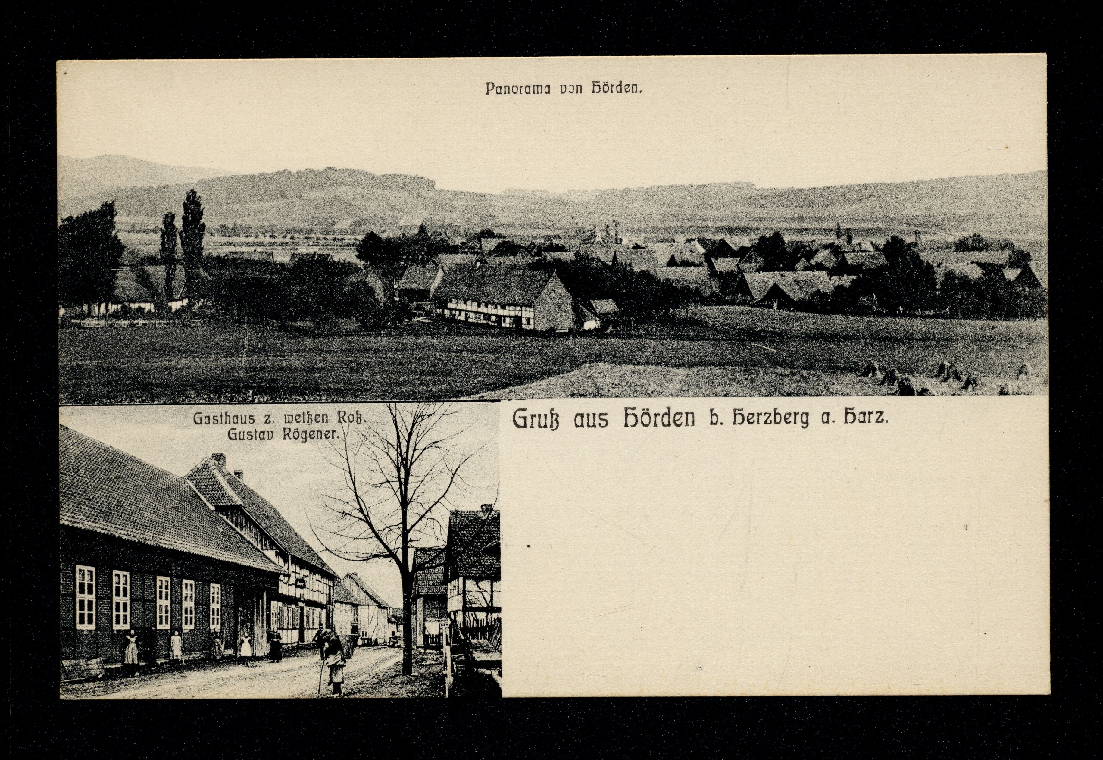 Ort Hörden Motive Panorama von Hörden Gasthaus z. weißen Roß. Gustav Rögener Format klein Verlag - Bestell- oder Individualnummer 12741 Tags Gasthaus Gasthaus zum weißen Roß Gustav Rögener Robert Claus Dresden