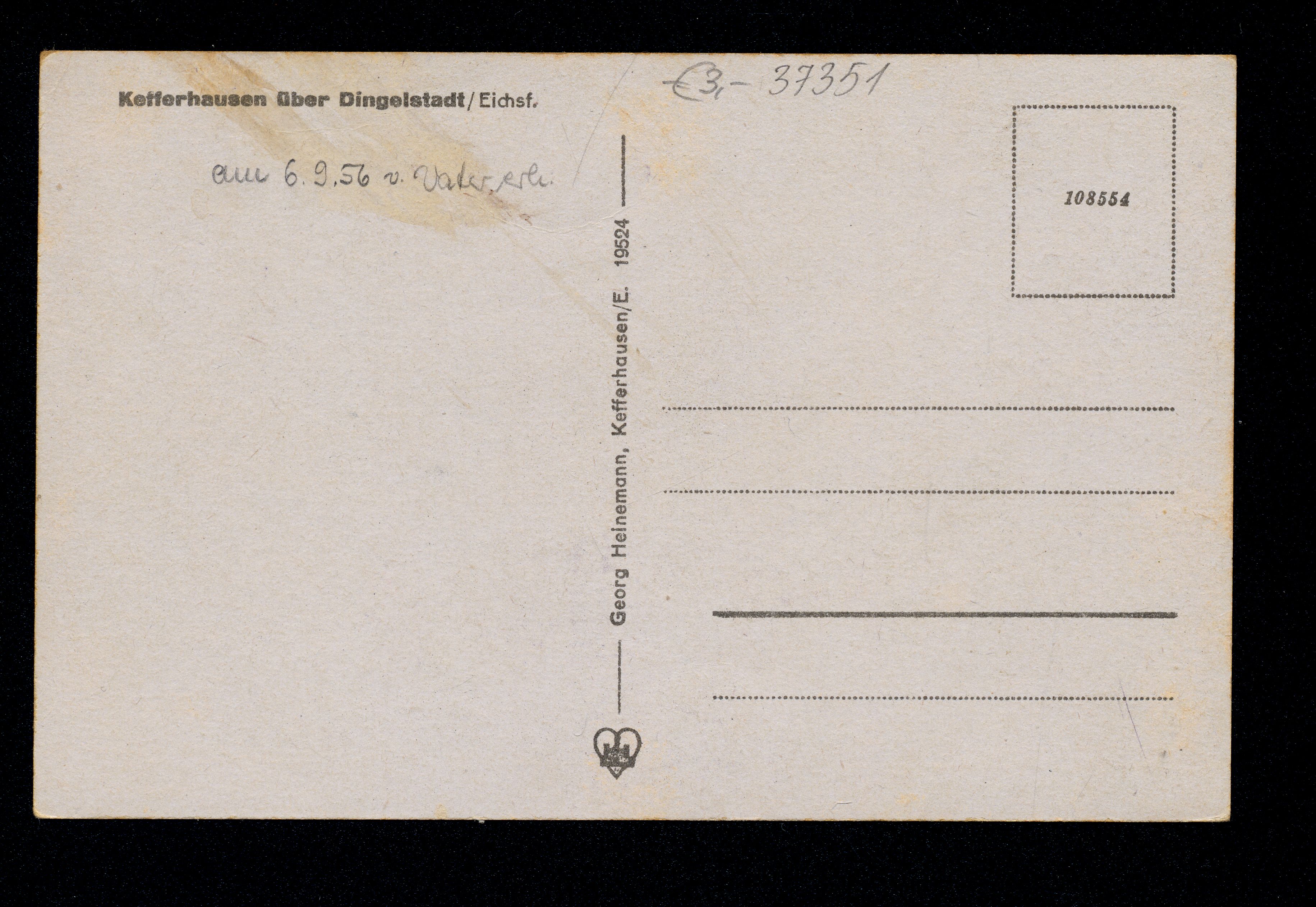 Ort Kefferhausen Motive Eisenbahnviadukt Panorama Pfarrhaus St. Josef Unstrutquelle Format klein Jahr 1956 Verlag Georg Heinemann, Kefferhausen/E. Bestell- oder Individualnummer 19524 108554 Tags Katholischer Kindergarten „St. Josef“