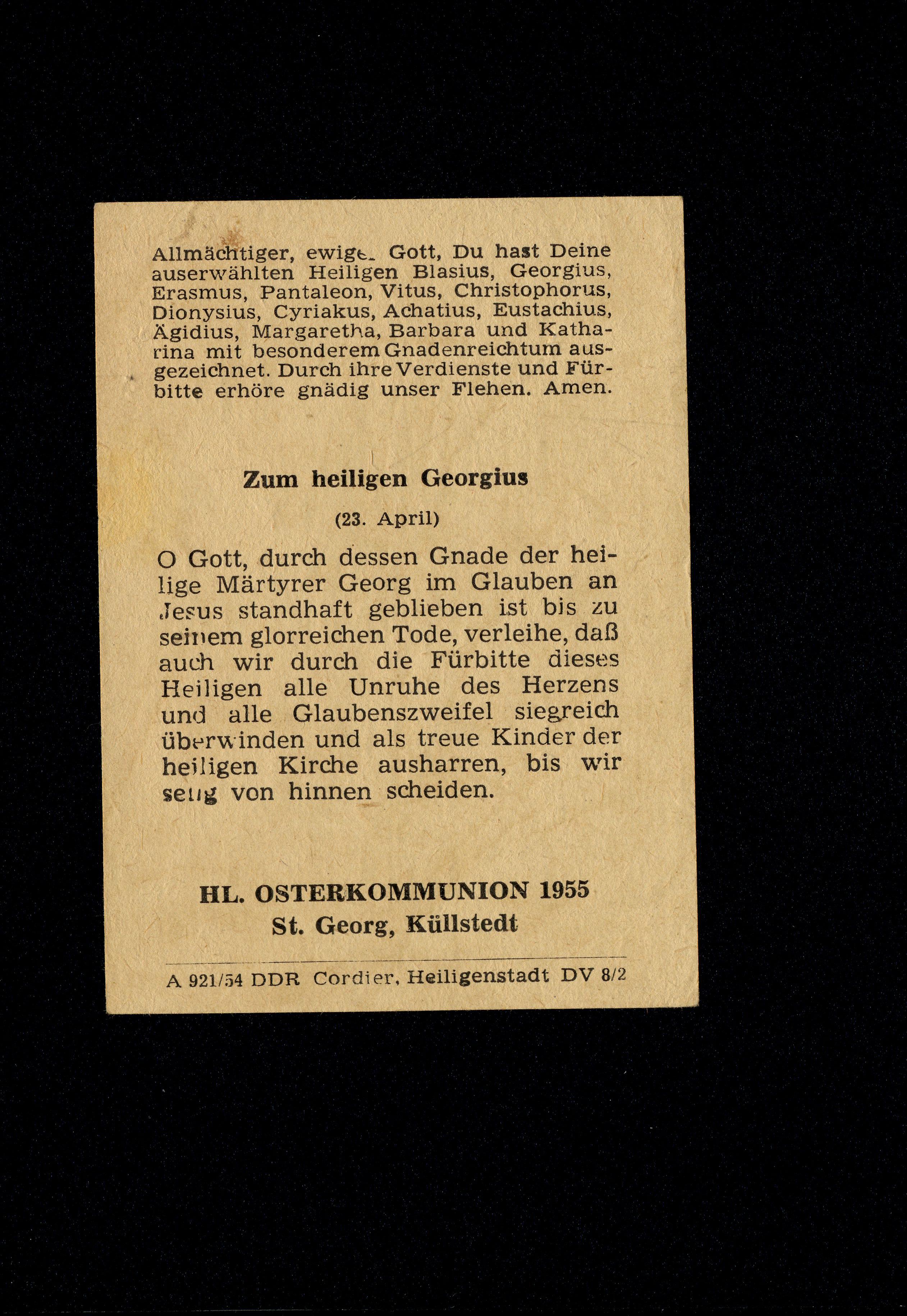 Ort Küllstedt - Belege Motive Hl. Osterkommunion 1955 Format Sonderformat Jahr 1955 Verlag F. W. Cordier, Heiligenstadt Bestell- oder Individualnummer A 921/54 DV 8/2
