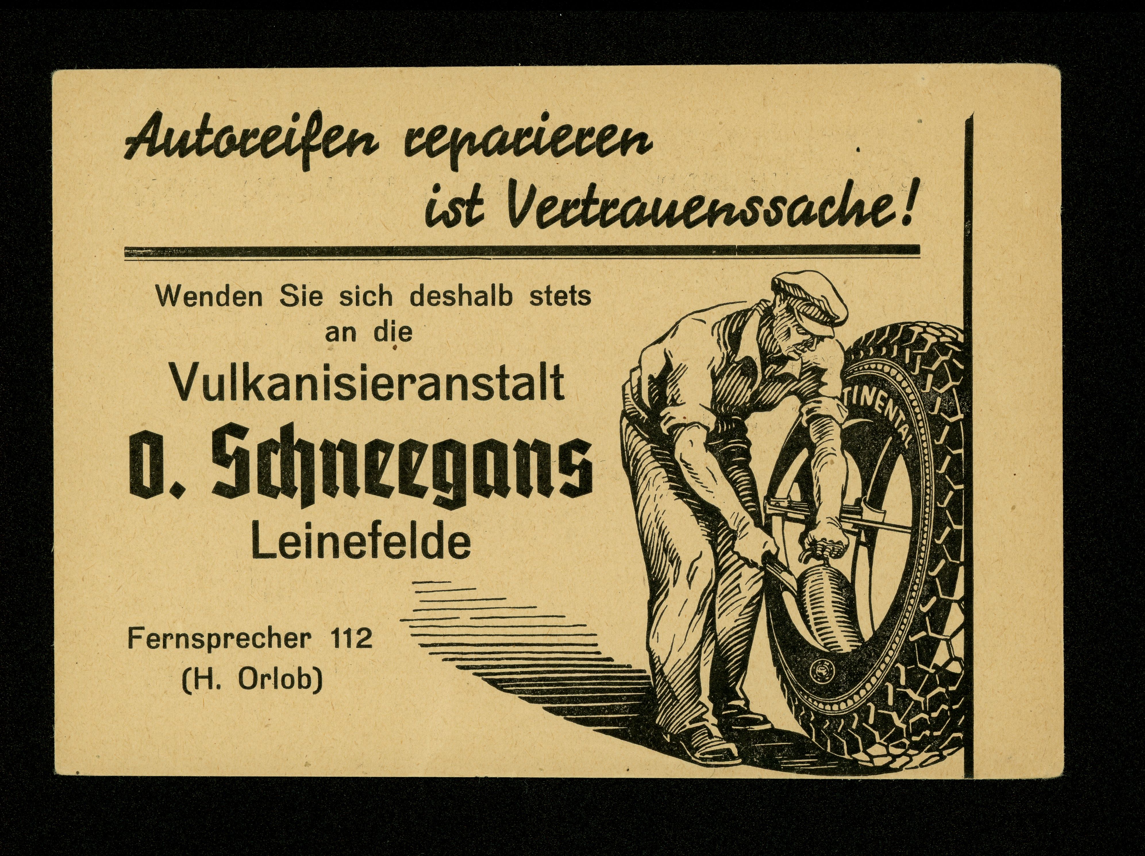 Ort Leinefelde - Belege Beschreibung Druck im Postkartenformat Motive Vulkanisieranstalt O. Schneegans Format Sonderformat Verlag - Bestell- oder Individualnummer - Tags Continental Autoreifen