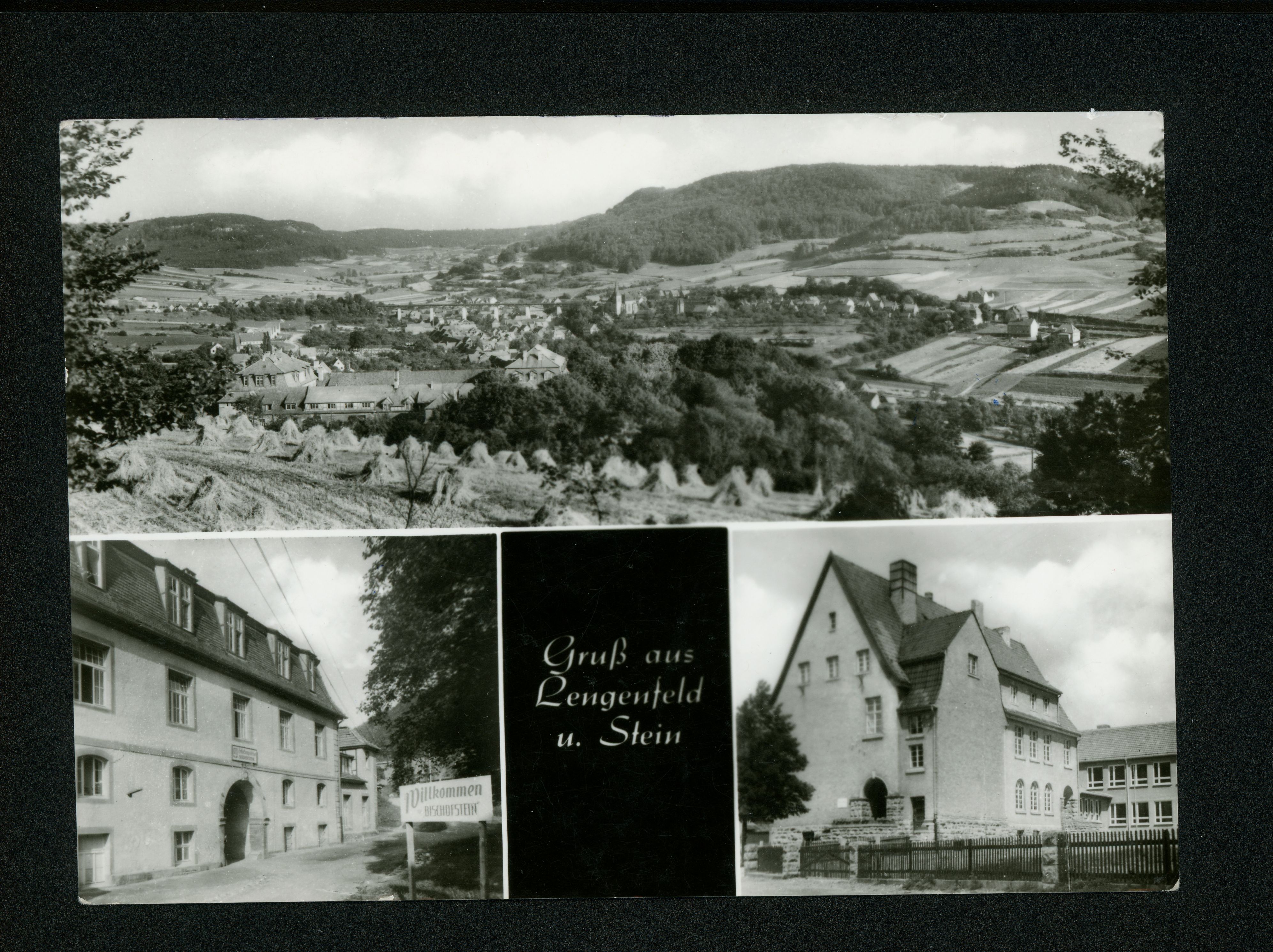 Ort Lengenfeld unterm Stein Motive Panorama FDGB-Heim Bischofstein Polytechnische Oberschule ''Käthe Kollwitz'' Format groß Jahr 1976 Verlag Schincke, Zeitz (Lichtbild-Schincke KG) Bestell- oder Individualnummer III/18/197 P 3/76 104