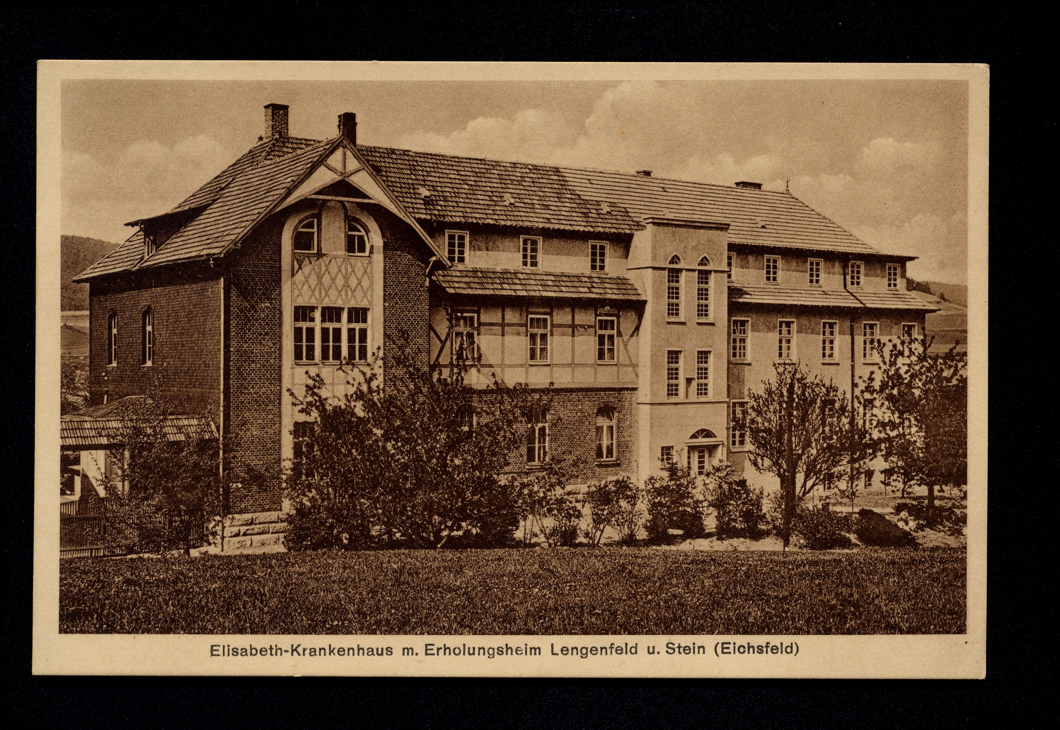 Ort Lengenfeld unterm Stein Motive Elisabeth-Krankenhaus m. Erholungsheim Format klein Verlag Heinrich Hardegen, Lengenfeld u. Stein Bestell- oder Individualnummer W 2243 29 Tags St.-Elisabeth-Krankenhaus Krankenhaus