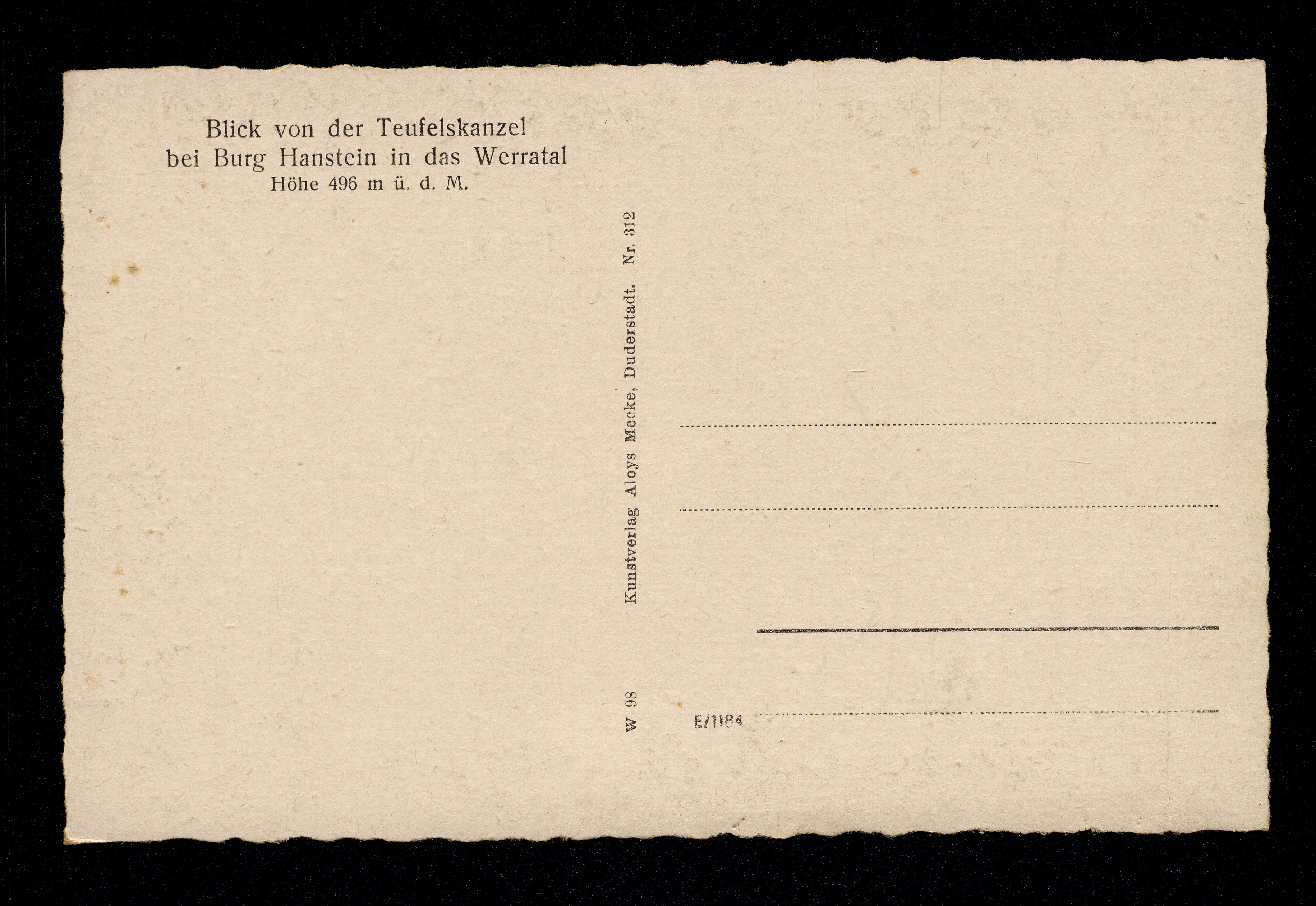 Ort Lindewerra Motive Lindewerra Oberrieden Burg Ludwigstein Format klein Verlag Aloys Mecke, Duderstadt Bestell- oder Individualnummer Nr. 312 w 98 Tags Werraschleife Werleshausen