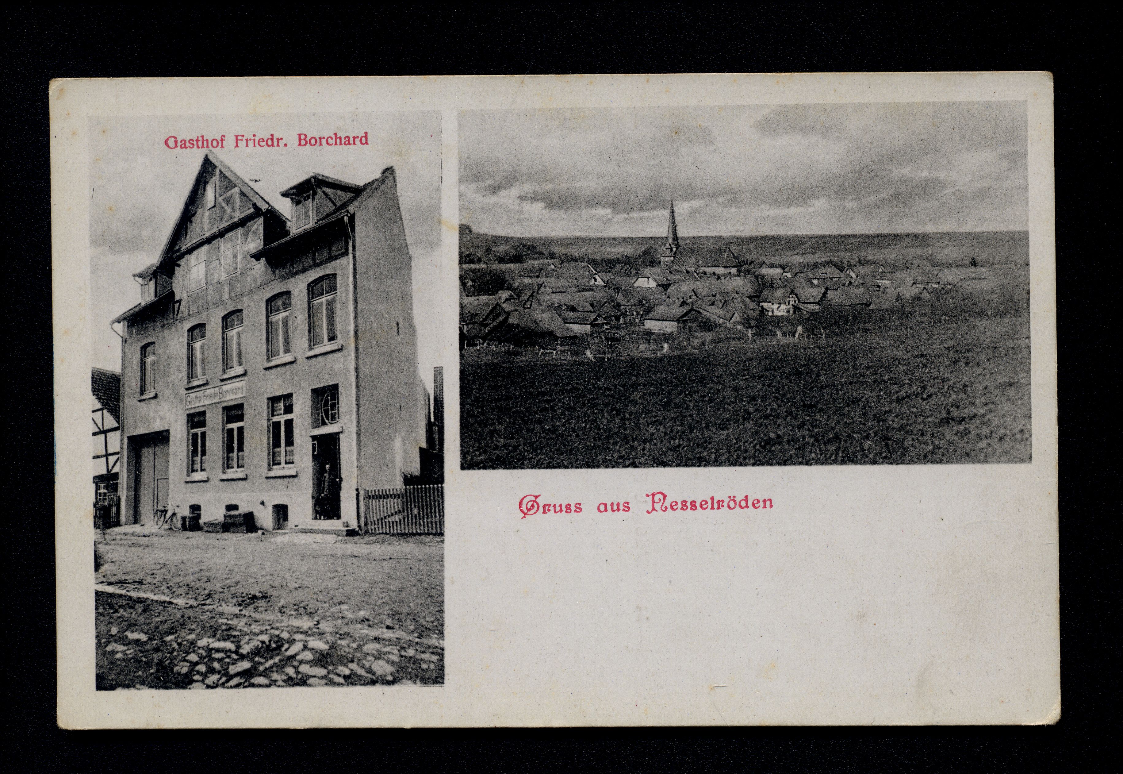 Ort Nesselröden Motive Gasthof Friedr. Borchard Format klein Verlag L. Eickhoff, Wöllmershausen Bestell- oder Individualnummer 54723 Tags Friedrich Borchard Gasthaus