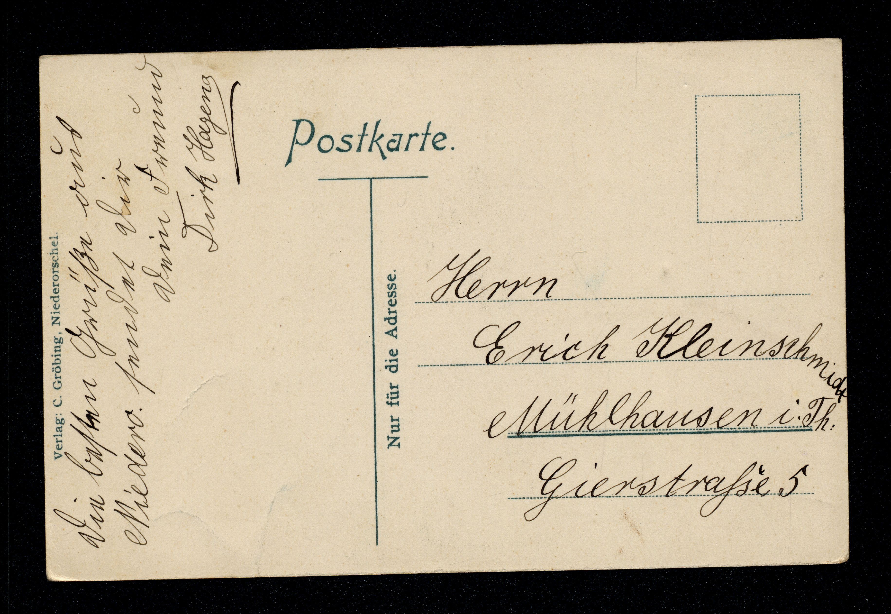 Ort Niederorschel Beschreibung Variante "einfarbig" Motive Kirche Riemannsche Weberei Postamt Bahnhof Wilhelmstrasse Format klein Verlag C. Gröbing, Niederorschel Bestell- oder Individualnummer - Tags Schmetterling