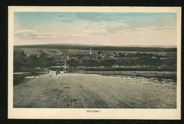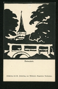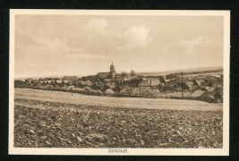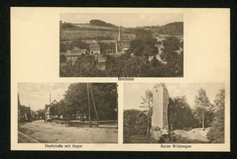 Teilansicht mit Kirche, Dorfstraße mit Anger, Ruine Wildungen |