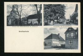 Kirche mit Schwesternhaus St. Elisabeth, Dorfstraße mit Kriegerehrung, Schulhaus |