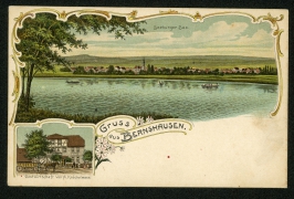 Totalbild, Kirche, Gasthof zu den drei Linden A. Bodmann |