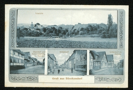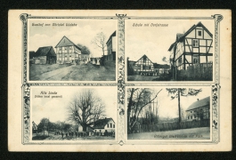 Gasthof von Christel Lüdeke, Schule mit Dorfstraße, Alte Linde (früher Insel genannt), Rittergut Bleckenrode mit Park |