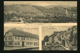 Teilansicht, Gasthof zur Tanne, Richard Jäke, Ruine Scharzfels |