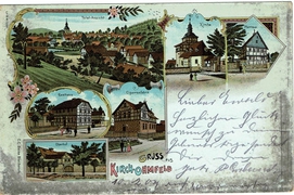 Gut Burgwalde u. Kirche, Rusteberg, Gasthof von Jos. Windolph, Kirche u. Dorflinde vom Krombach ''Eichsfeld'' |