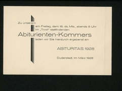 Einladung zum Abiturienten-Kommers, Abituritas 1928 |