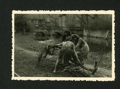 Arbeitsmaiden beim Kleinholz machen |