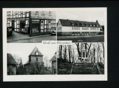 Geschäftshaus Ermel, Schule, Kirche, Ehrenmal |