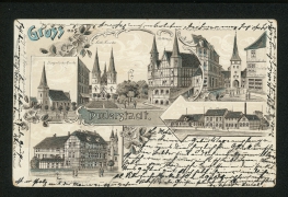 Evangelische Kirche, Kath. Kirche, Rathhaus, Spiegelbrücke mit Westerthurm, Ursulinenkloster, Bahnhof |