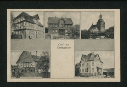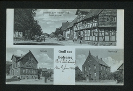Schule, Pfarrhaus, Kirche, Gasthaus zum goldenen Stern, Friedrich Becker, Pferdehandlung H. Aschoff |