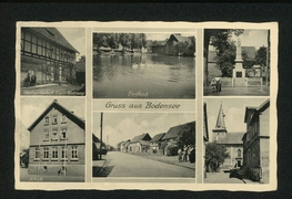 Gastwirtschaft Franz Nachtweg, Dorfteich, Kriegerdenkmal, Schule, Dorfstraße, Kirche |